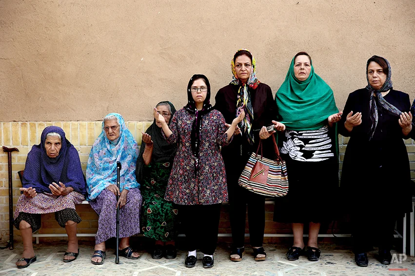 In this Saturday, June 14, 2014 photo, Zoroastrians pray in Setipir Shrine in Yazd about 405 miles (675 kilometers) southeast of the capital Tehran, Iran. (AP Photo/Ebrahim Noroozi)