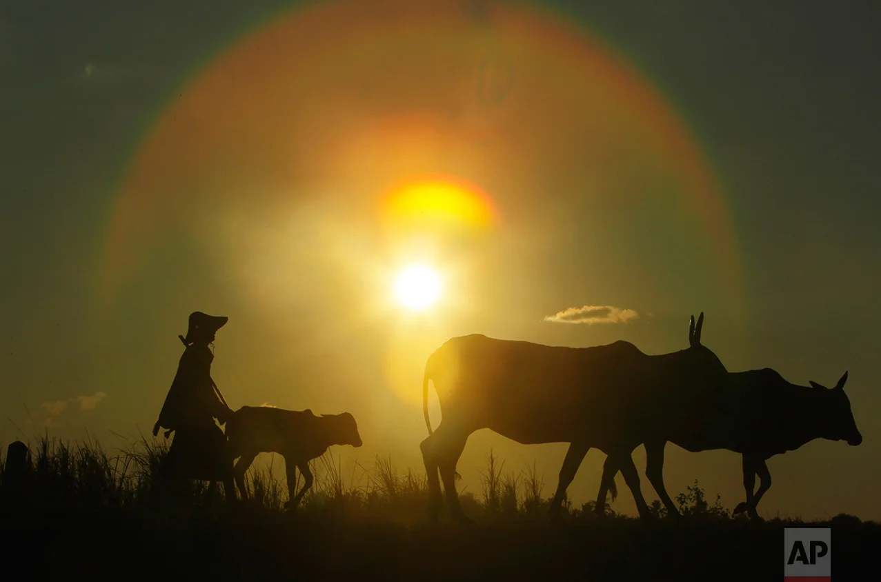 A herder walks with cows during the sunset in Naypytaw, Myanmar, Monday, Nov. 28, 2016. (AP Photo/Aung Shine Oo)