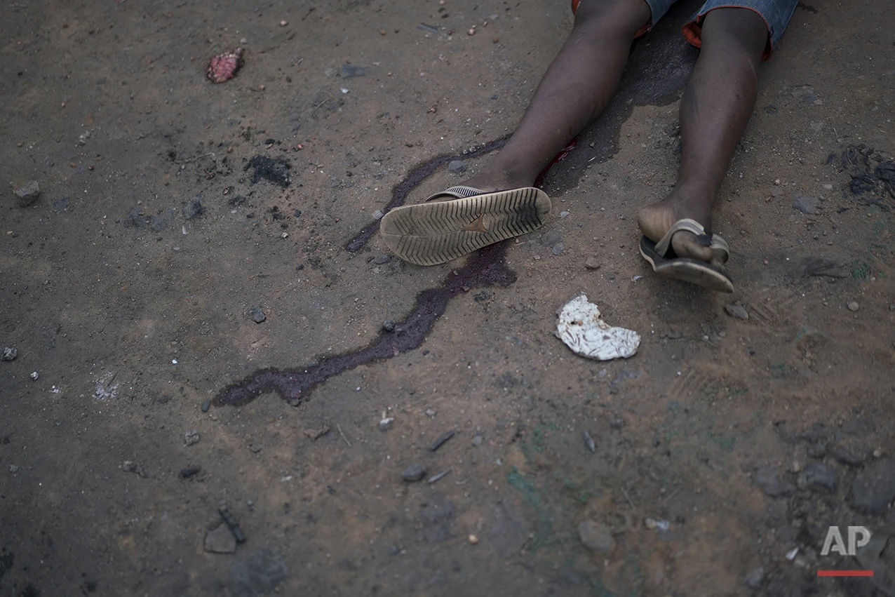 This June 30, 2016 photo shows the body of a teenage boy who was killed while walking outside of his home turf in a gang controlled area of Rio de Janeiro, Brazil. Later in the day, according to residents, the father went to denounce his son's death to the gang and was shot dead. Overall murders are on the rise in the first half of 2016 say officials, and the victims are overwhelmingly young, black men. (AP Photo/Felipe Dana)
