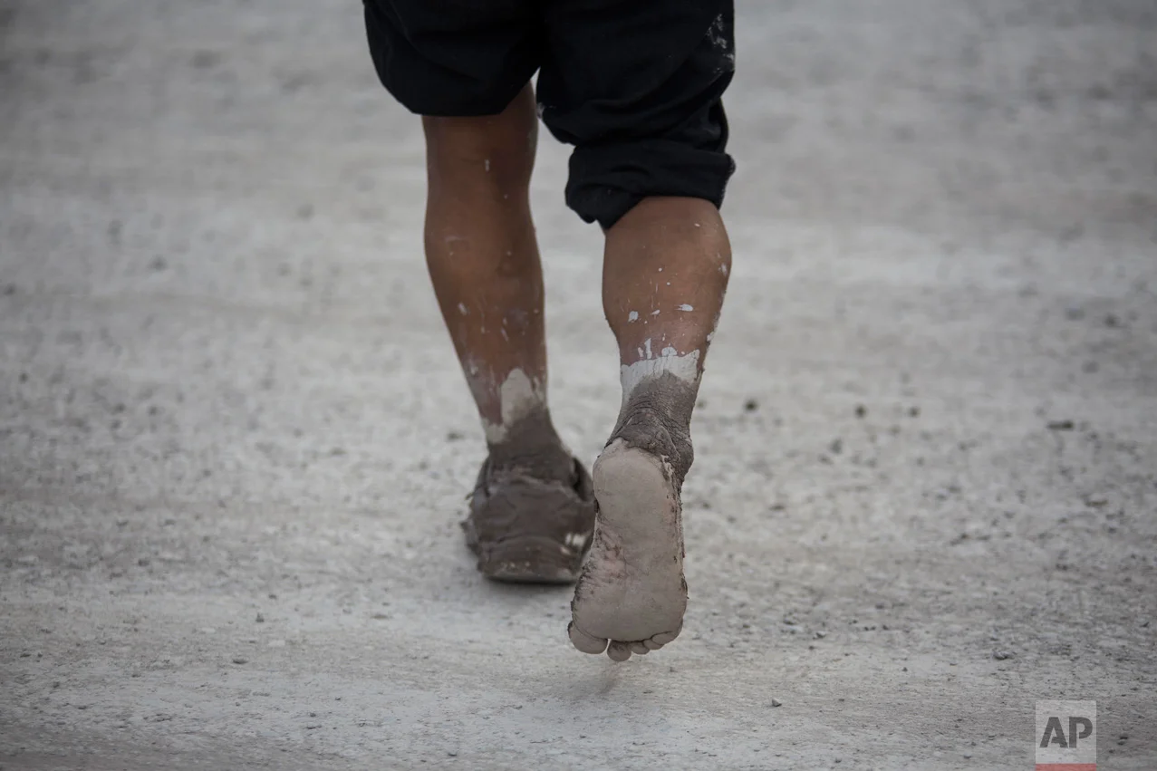 In this Jan. 13, 2017 photo, a man walks to a shelter in the mud stricken t town of Volcan, Jujuy province, Argentina. The mudslide was caused by the Intense rains that hit the area one week ago, flooding the town with mud, killing several and causing the evacuation of thousands. (Gianni Bulacio/Infoto via AP)