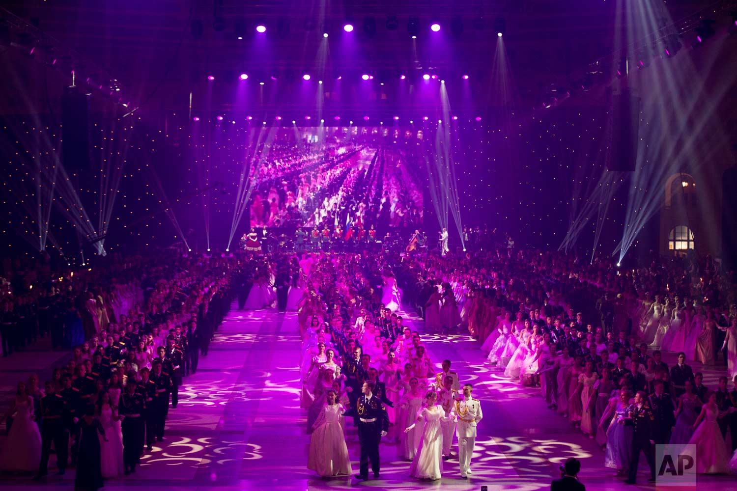Military school students dance during their annual ball in Moscow, Russia, Tuesday, Dec. 12, 2017. AP Photo/Alexander Zemlianichenko)