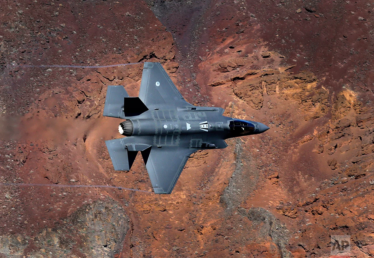 In this Feb. 28, 2017, photo, a Lockheed Martin F-35A Lighting II from the 323 Squadron, Royal Netherlands Air Force flies through the nicknamed Star Wars Canyon on the Jedi transition in Death Valley National Park, Calif. (AP Photo/Ben Margot)
