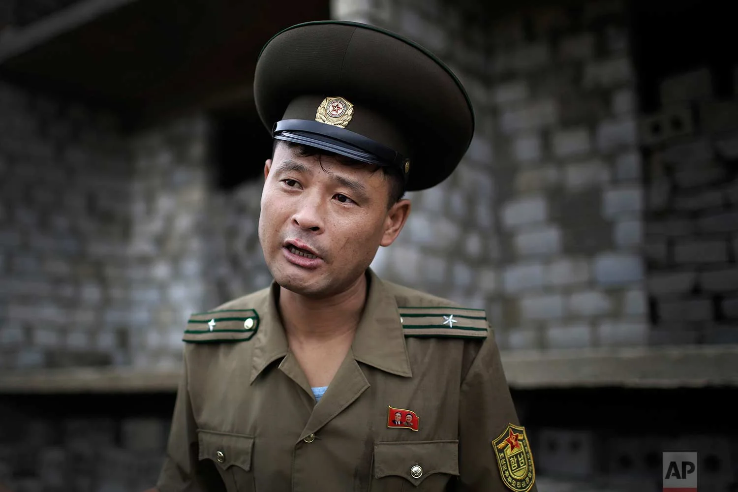 In this Friday, July 21, 2017, photo, Maj. Jong Il Hyon, 44, a member of a bomb squad for South Hamgyong, speaks to The Associated Press at a construction site on the outskirts of Hamhung, North Korea's second-largest city, where workers unearthed a rusted but still potentially deadly mortar round in February. (AP Photo/Wong Maye-E)