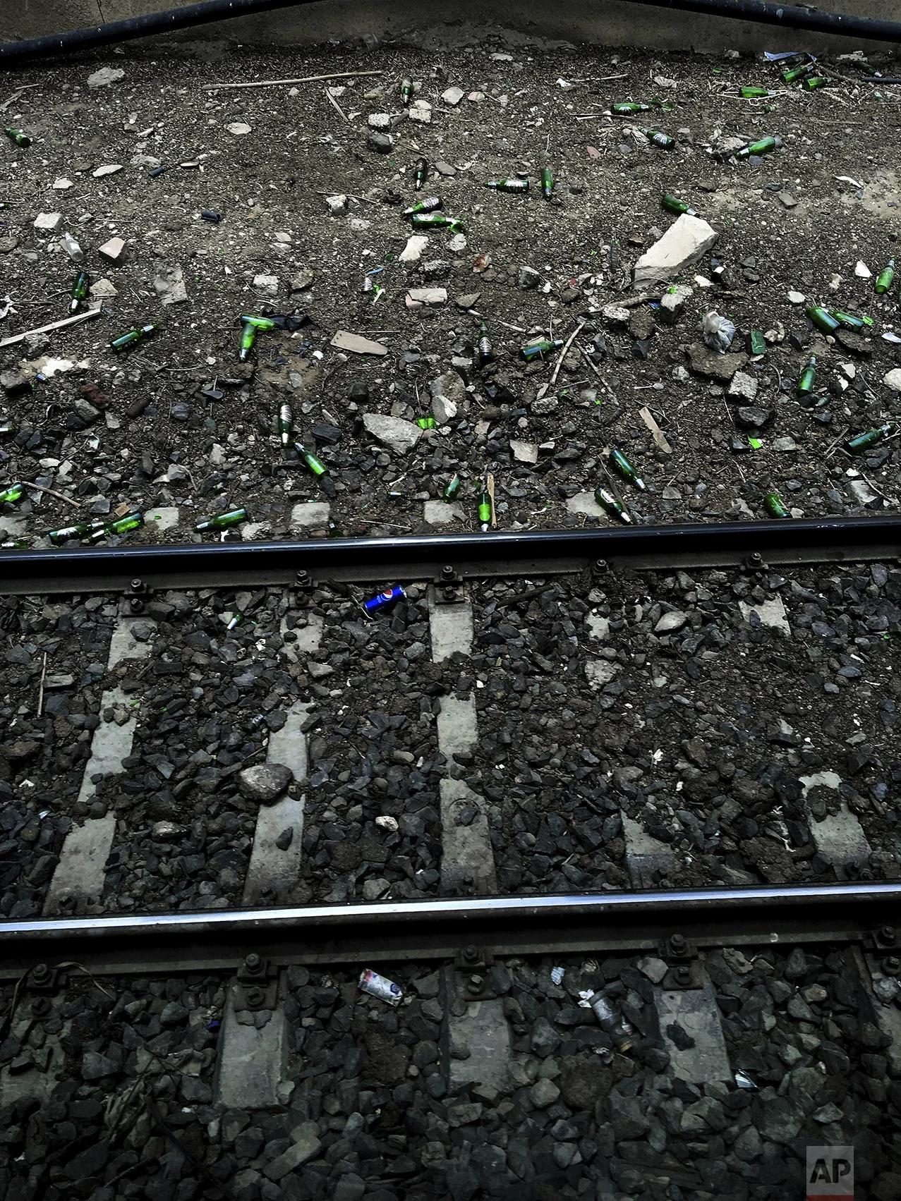 In this May 17, 2017 photo, beer bottles and soda cans lay along the railing of a metro station, in Cairo, Egypt. (AP Photo/Nariman El-Mofty)