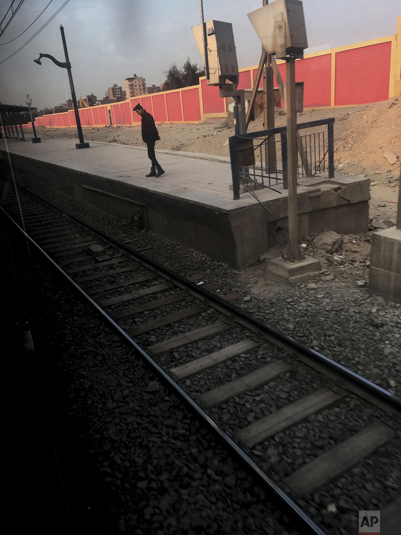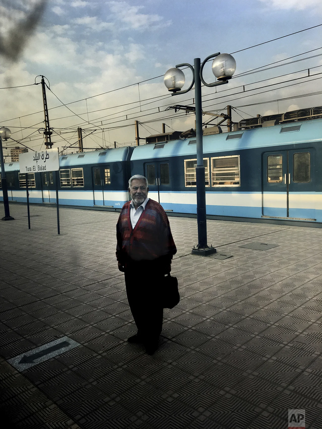 In this Feb. 1, 2017 photo, a man waits for a train at Tura El Balad metro station, in Cairo, Egypt. (AP Photo/Nariman El-Mofty)