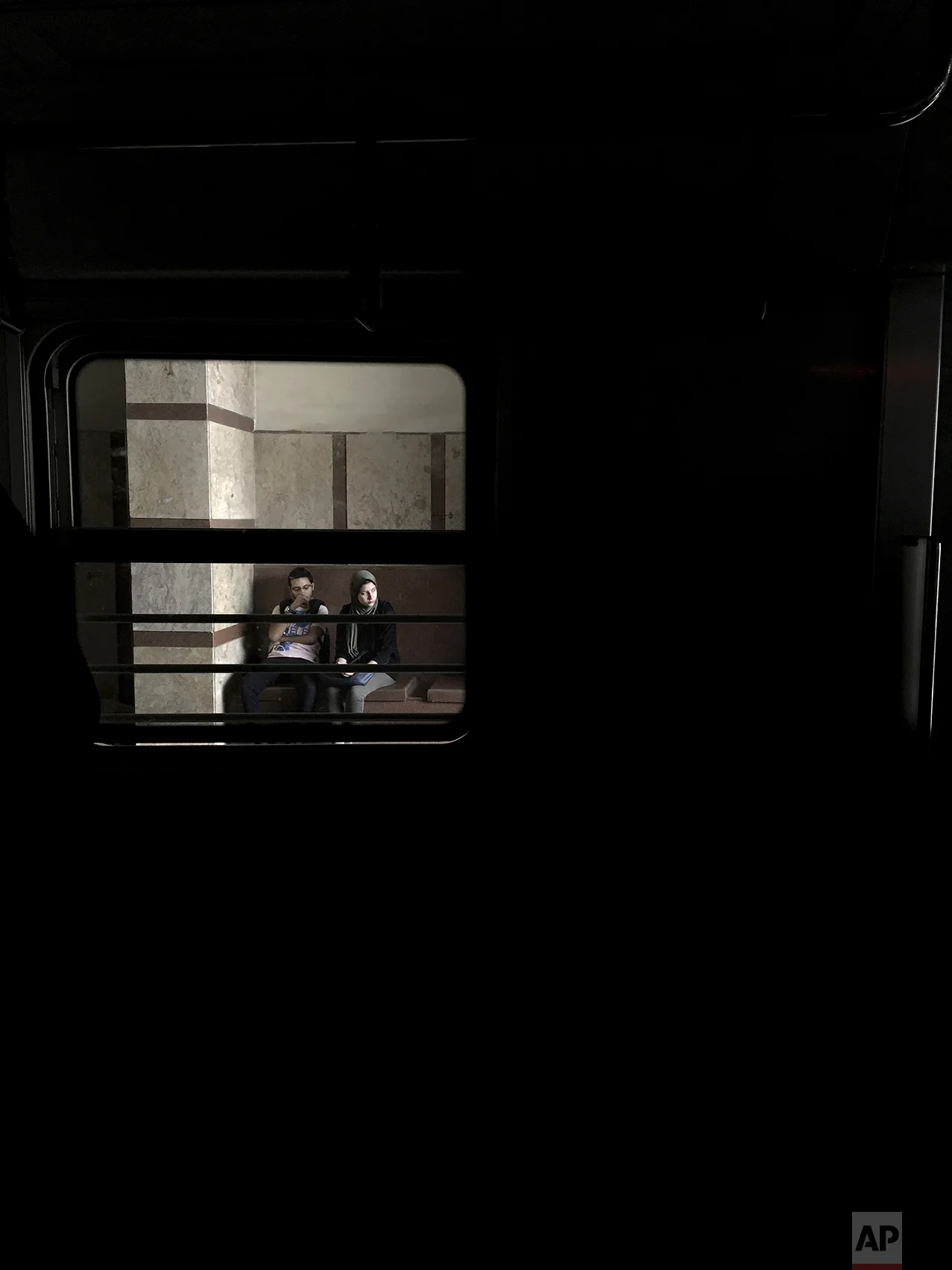 In this March 13, 2017 photo, people are seen from the window of a metro car, at El Zahraa metro station in Cairo, Egypt. (AP Photo/Nariman El-Mofty)