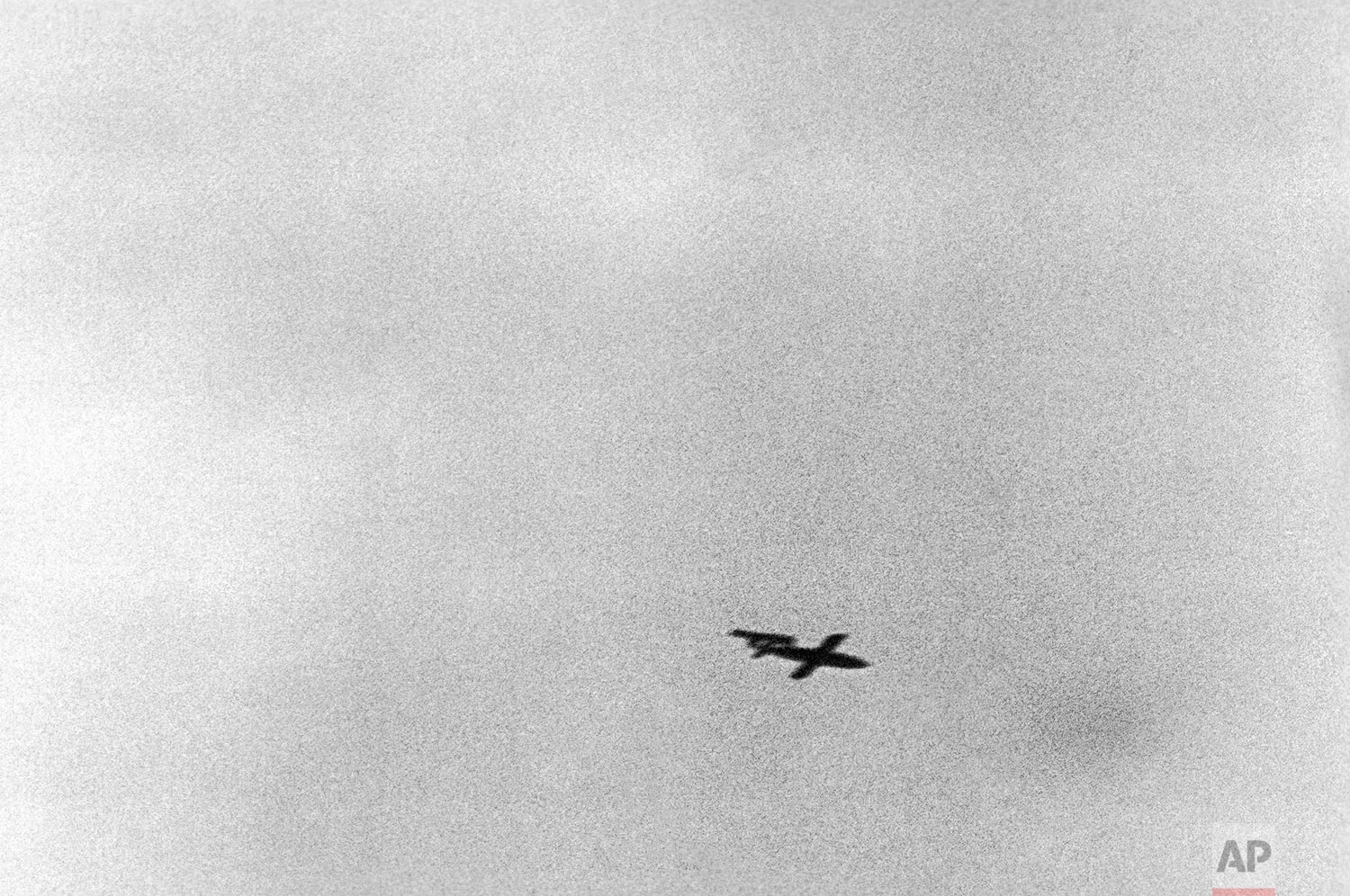 This undated photo shows a German V1 robot bomb flying towards London. Of the 8,000 launched, 2,300 robots got through the gun, fighter plane and balloon defenses, and badly damaged more than a million homes, killing over 5,000 British civilians. (AP Photo)