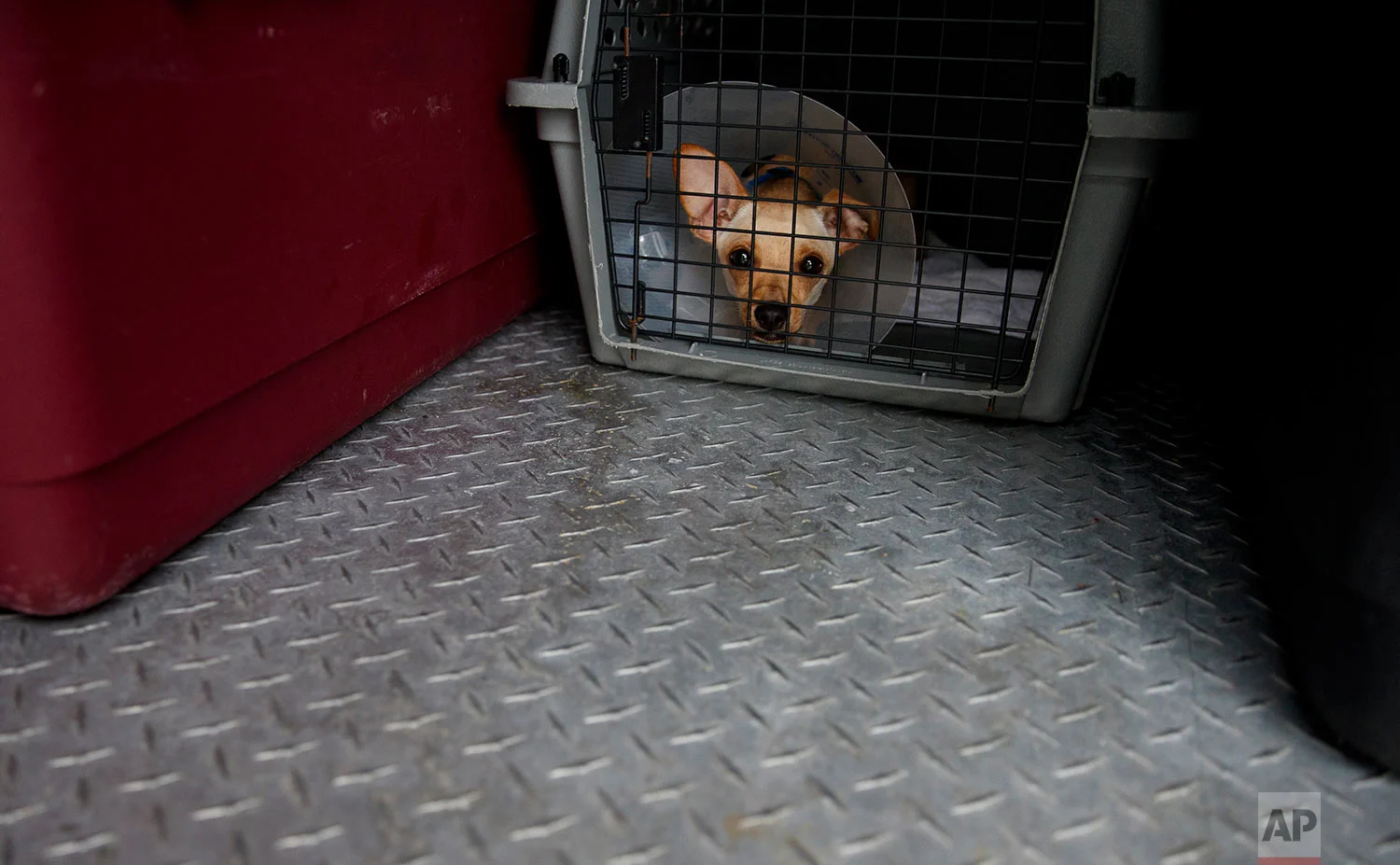 Vickie Grate, left, waits in a shelter with her son Chris, center, and his girlfriend Sarah, who only gave their first names, for Hurricane Florence to pass after evacuating from their nearby homes, in Conway, S.C., Wednesday, Sept. 12, 2018. (AP Photo/David Goldman)