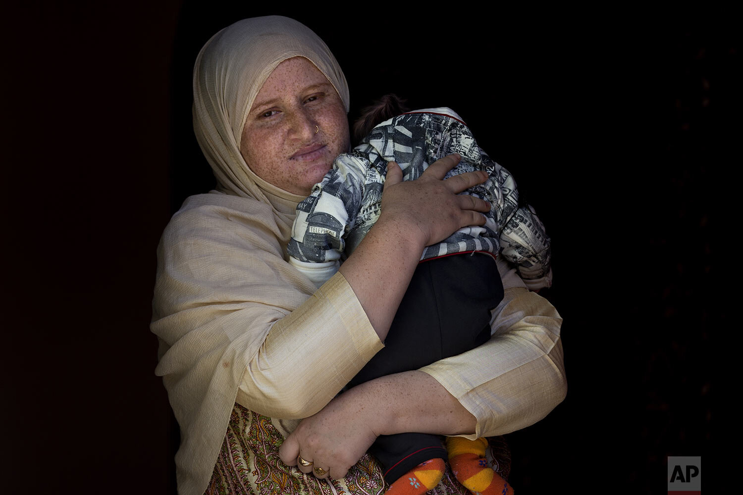 Sumaira Bilal, wife of Kashmiri detainee Bilal Ahmed, talks to her two-year-old daughter as they sit in their home in Srinagar, Indian controlled Kashmir. Ahmed was detained on the night of Aug. 5, the day Indian Prime Minister Narendra Modi’s Hindu-nationalist government repealed Article 370 of the Indian Constitution, stripping Kashmir of its statehood. Sumaira says her daughter points to the window often and calls for her father.