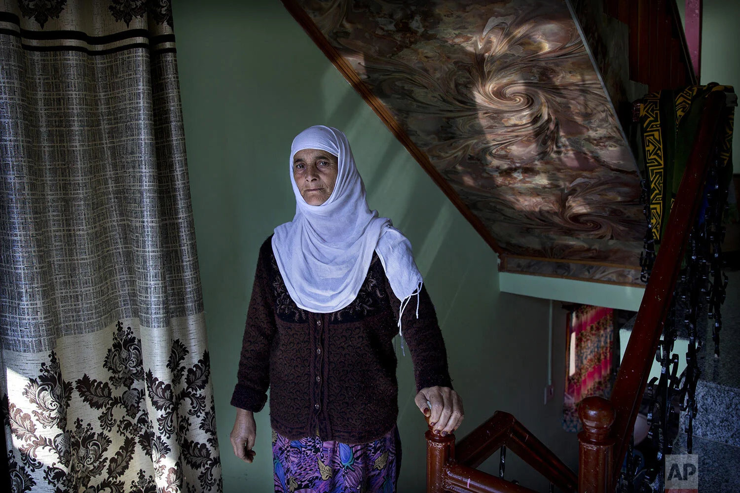 Ateeqa Begum poses for a photograph in her home in in Srinagar, Indian controlled Kashmir. Ateeqa has lived alone ever since her only son 22-year-old Fasil Aslam Mir, the family's sole breadwinner, was detained on his way home after fetching medicines for her on the day the lockdown began.