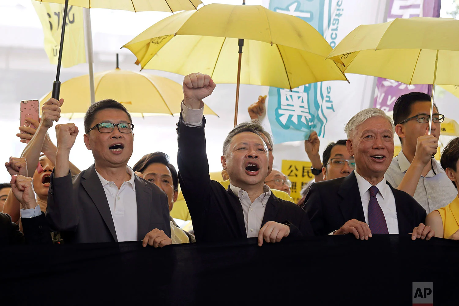 A Hong Kong court convicts nine leaders of the 2014 pro-democracy demonstrations known as the "Umbrella Movement." Hong Kong judges were reportedly under pressure from China to hand down heavy sentences to deter future protests.