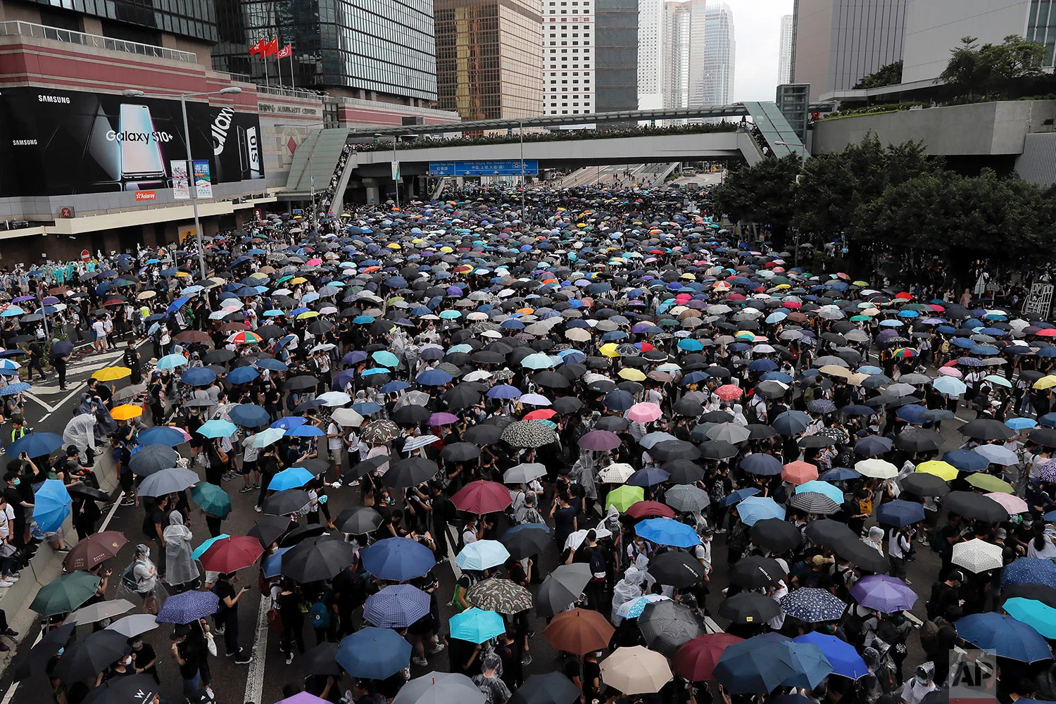 Hundreds of thousands march through central Hong Kong to protest the proposed changes to the extradition laws.