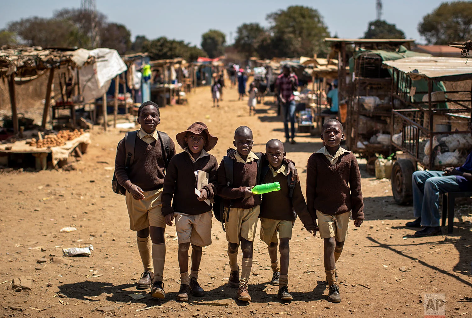 Schoolboys walk back home on the first day of the school term, in Kuwadzana, on the outskirts of the capital Harare, in Zimbabwe, Sept. 10, 2019. (AP Photo/Ben Curtis)