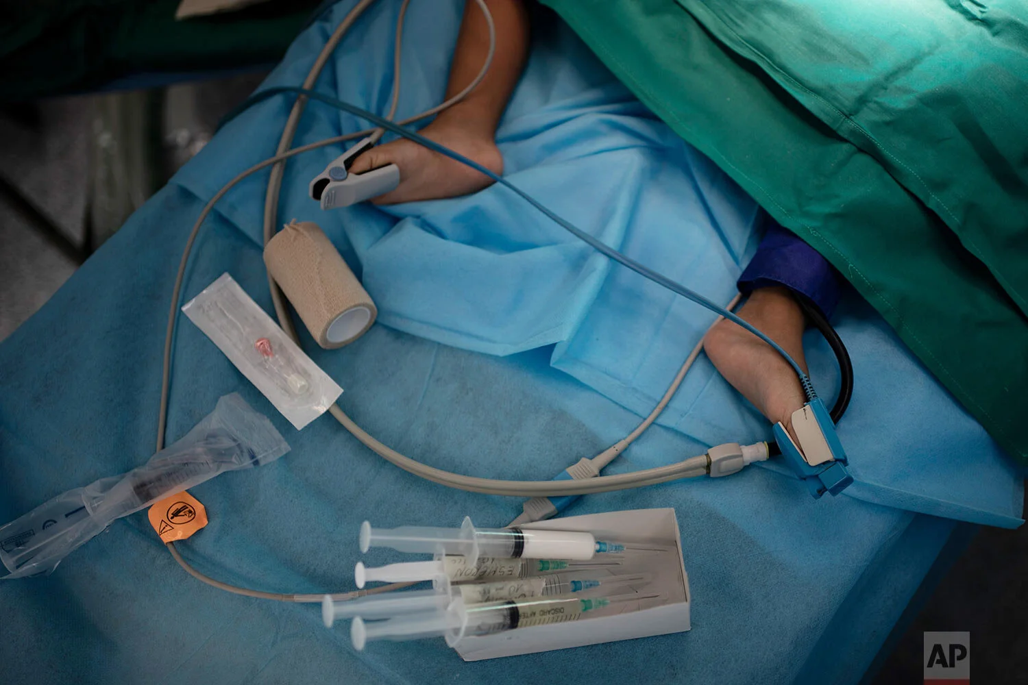 Abdulrahman lies on an operating table as he is prepared for heart surgery at the Tajoura National Heart Center in Tripoli, Libya, Feb. 24, 2020. (AP Photo/Felipe Dana)