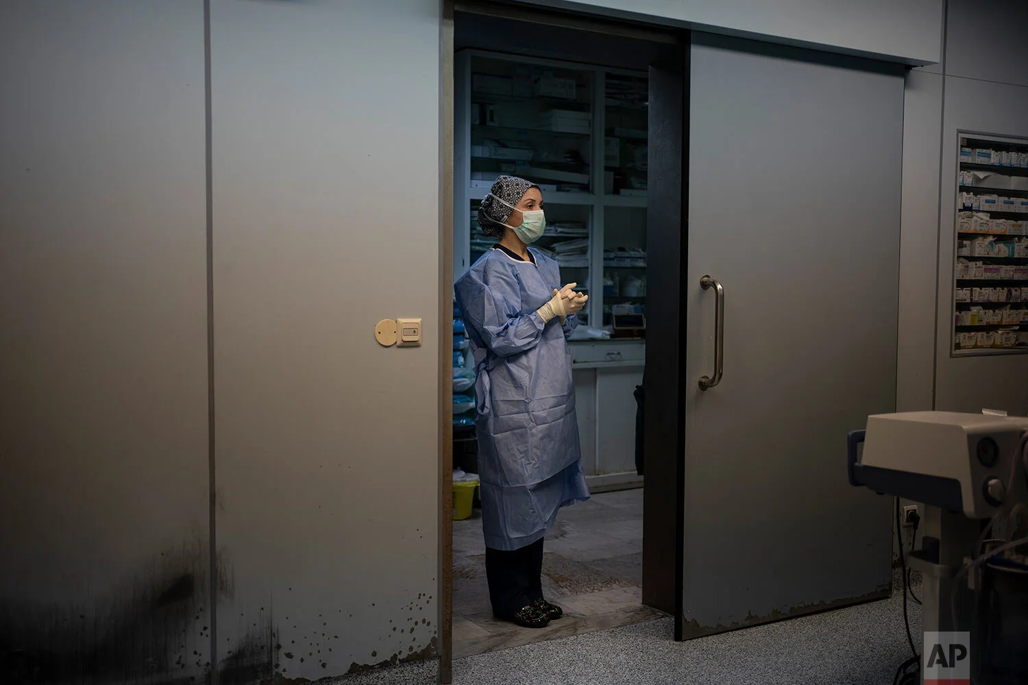 Nurse Martina Pavanic, of the Novick Cardiac Alliance medical team, stands in the operating room before a surgery at the Tajoura National Heart Center in Tripoli, Libya, Feb. 24, 2020. (AP Photo/Felipe Dana)