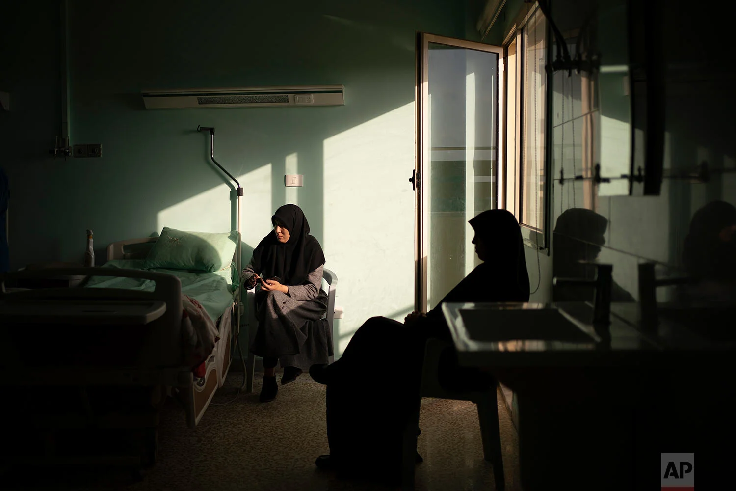 Family members of children having heart surgery wait in a room at the Tajoura National Heart Center in Tripoli, Libya, Feb. 27, 2020. (AP Photo/Felipe Dana)
