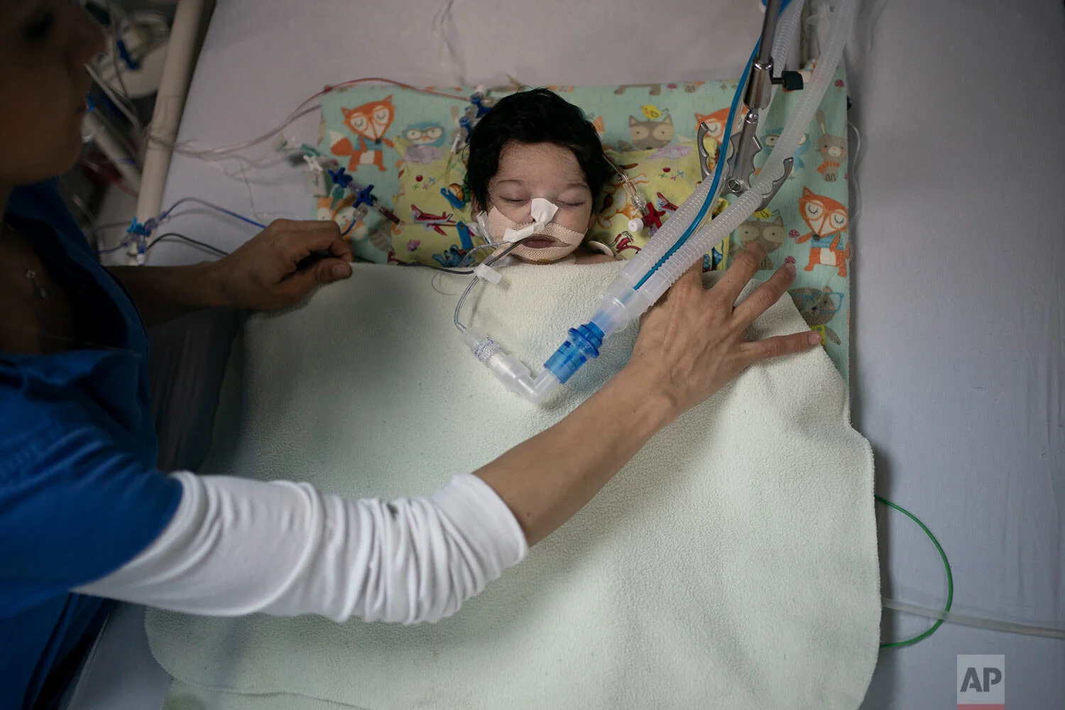 Nurse Nena Sreckovic, of the Novick Cardiac Alliance medical team, places a blanket over 40-day-old Yaqen as she recovers from heart surgery in the intensive care unit of the Tajoura National Heart Center in Tripoli, Libya, Feb. 26, 2020. (AP Photo/Felipe Dana)