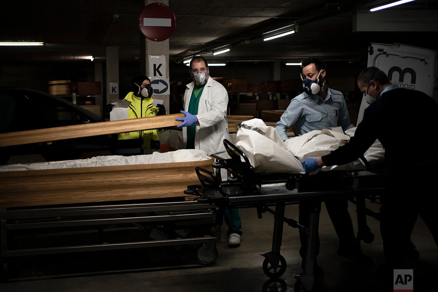 Text from the AP News story, Coffins in the parking lot: A Spanish funeral home copes, by Renata Brito.