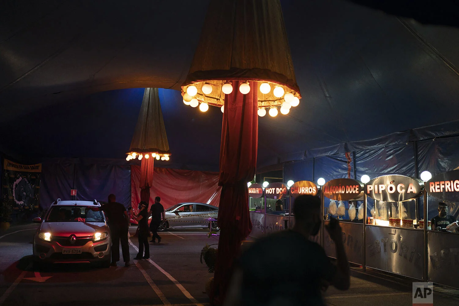The circus, which started in 1898 in Portugal, has been in Brazil for 30 years and for the first time had cars parked around the stage instead of a crowd of people.