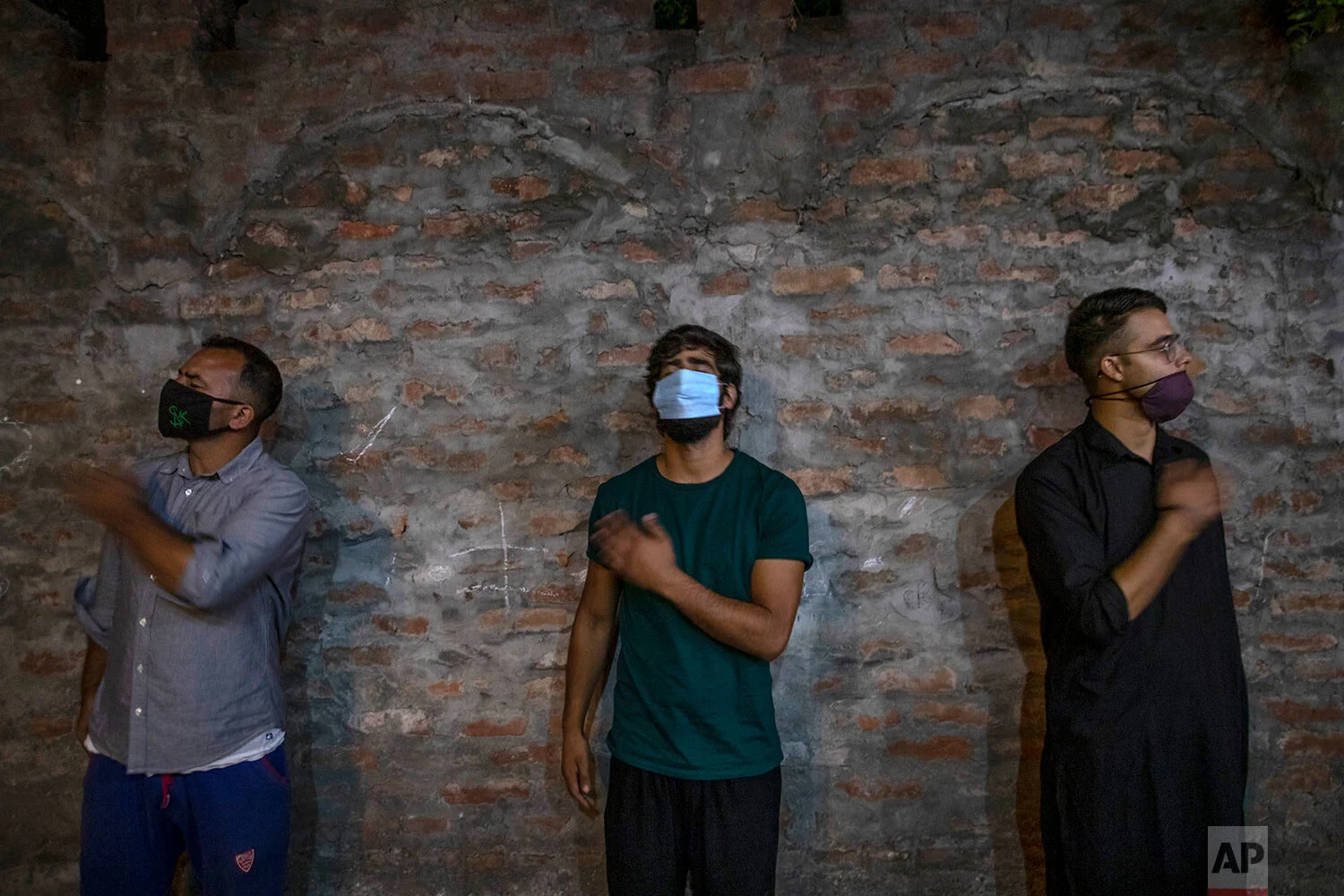 Kashmiri Shiite Muslims beat their chests as they commemorate Muharram inside a residential house in Srinagar Indian controlled Kashmir, Aug. 21, 2020. (AP Photo/Dar Yasin)