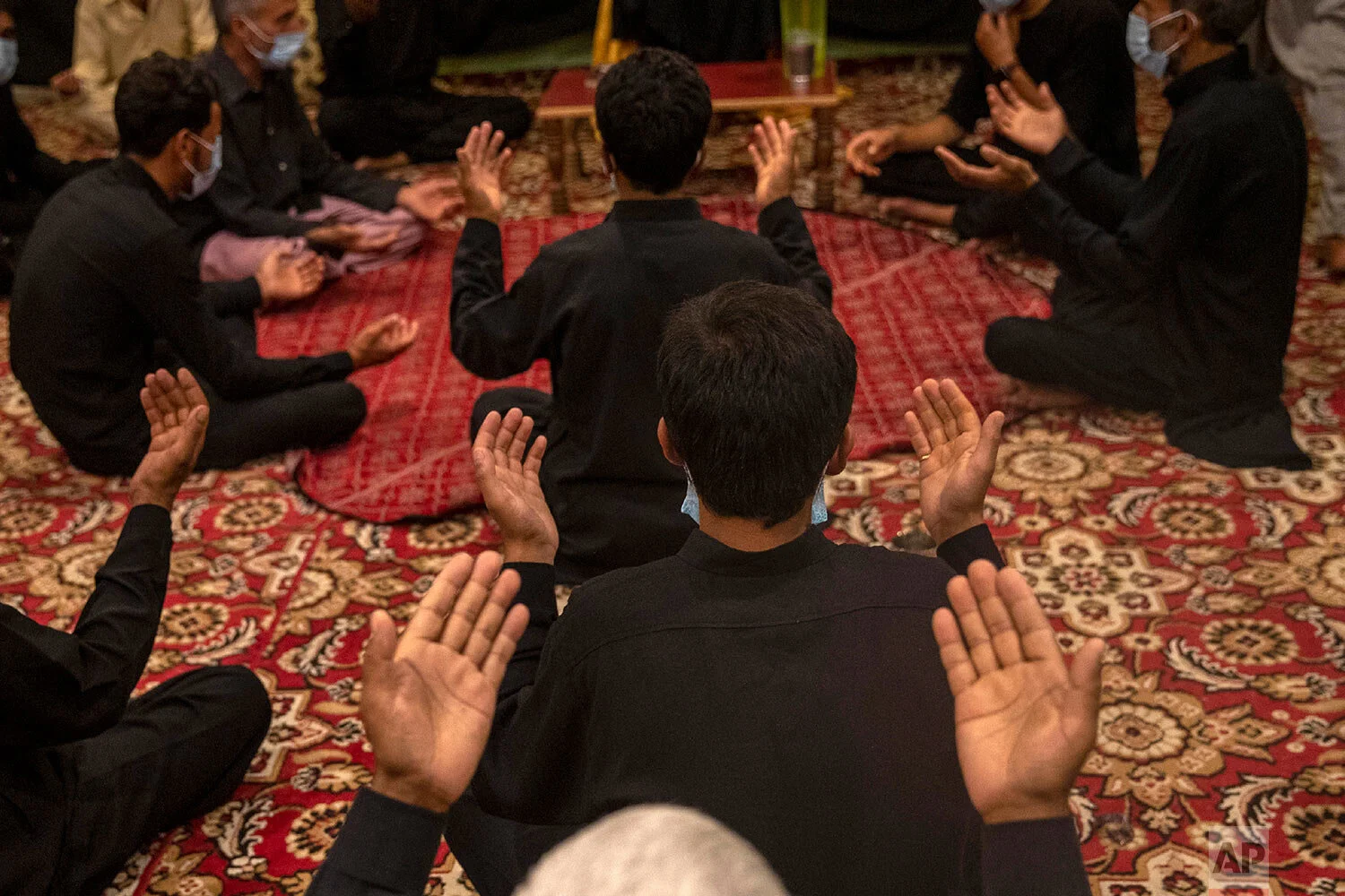 Kashmiri Shiite Muslims pray as they commemorate Muharram inside their house in Srinagar, Indian controlled Kashmir, Aug. 23, 2020. (AP Photo/ Dar Yasin)