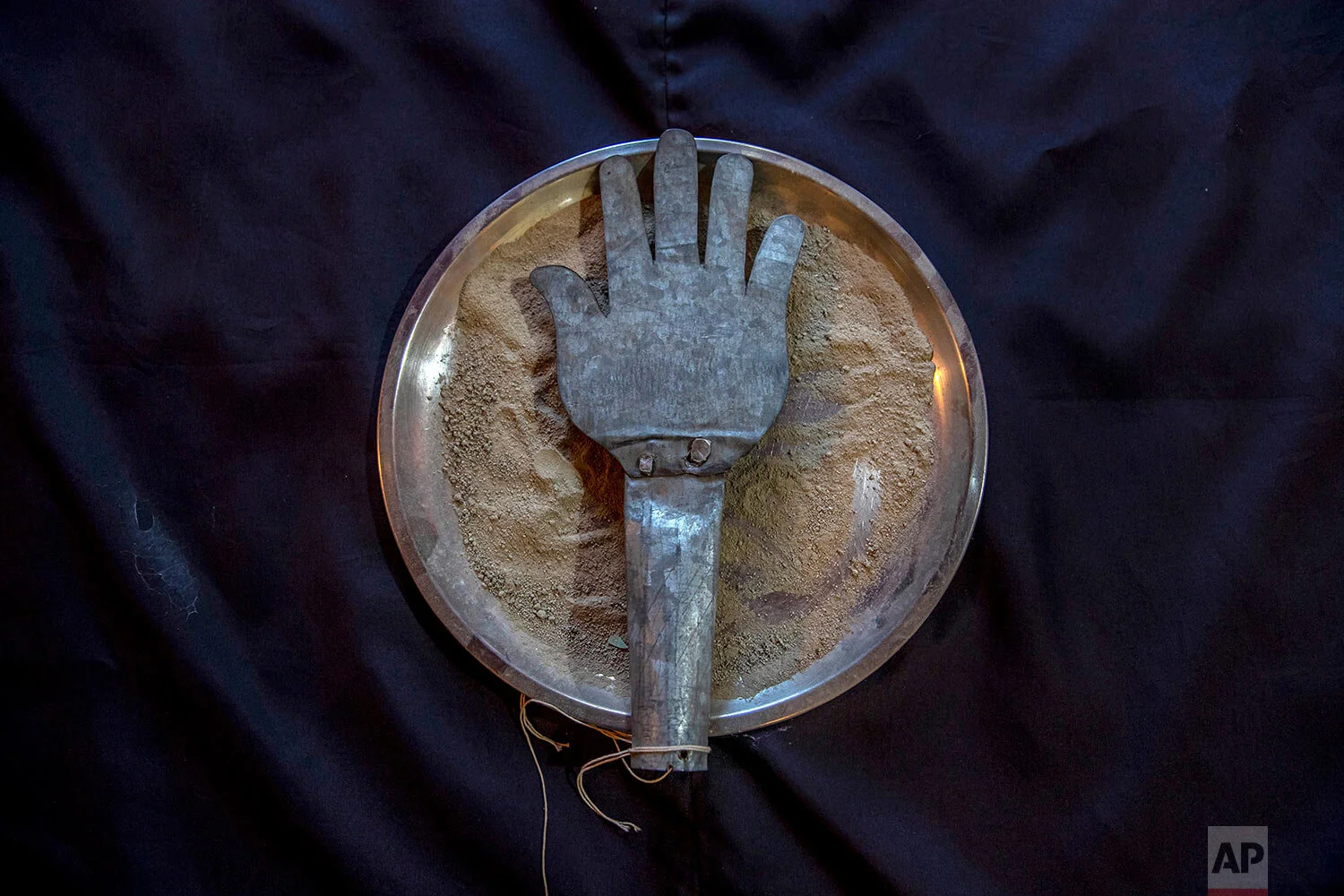 A religious symbol and the mud from Karbala is placed in a plate inside a house during the month of Muharram in Srinagar Indian controlled Kashmir, Aug. 25, 2020. (AP Photo/Dar Yasin)