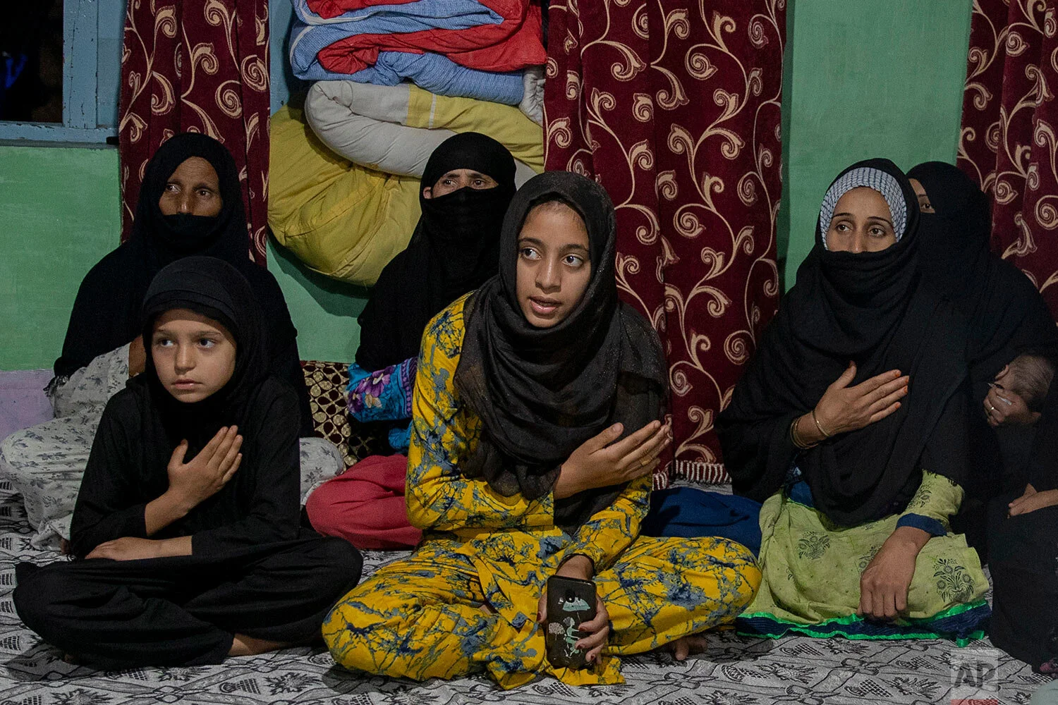 Kashmiri Shiite Muslim women beat their chest during commemoration of Muharram inside a shrine in Srinagar, Indian controlled Kashmir, Aug. 22, 2020. (AP Photo/Dar Yasin)