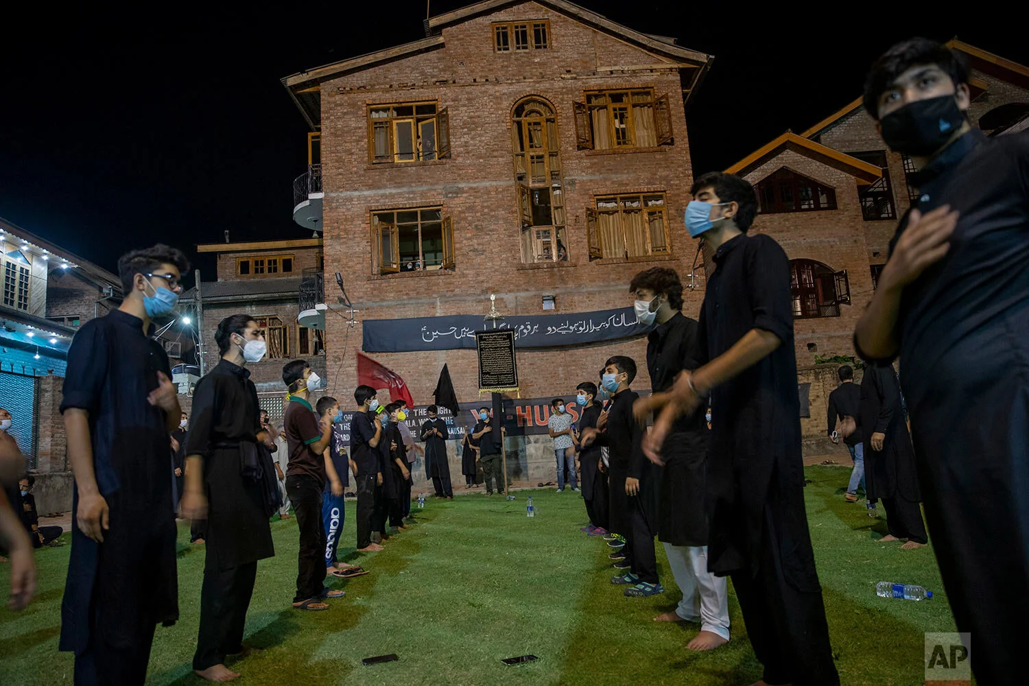 Kashmiri Shiite Muslims take part in a ceremony to commemorate Muharram inside a park in Srinagar, Indian-controlled Kashmir, Aug. 25, 2020. (AP Photo/Dar Yasin)
