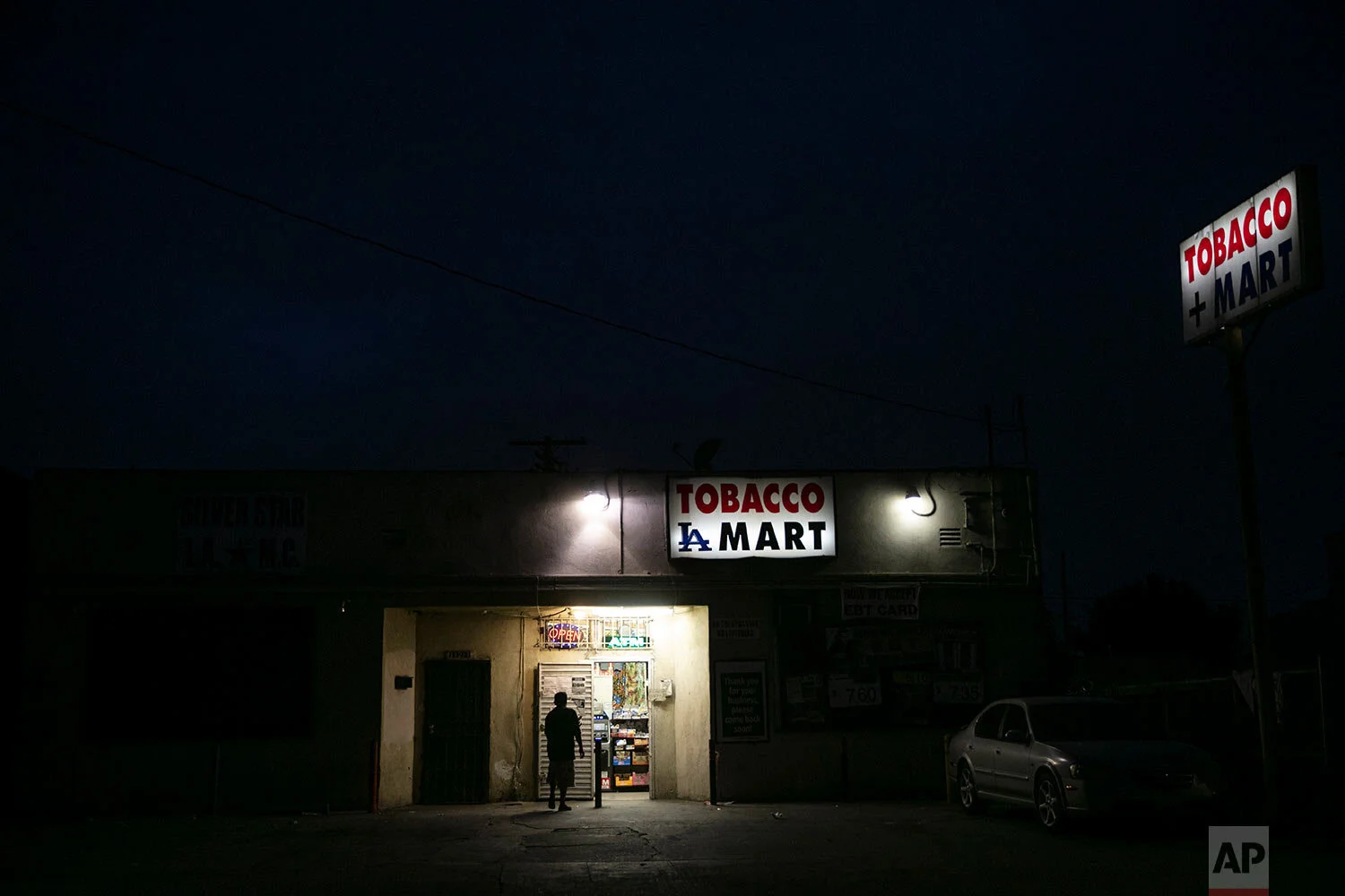 A man walks into a grocery store, June 30, 2020, in the Watts neighborhood of Los Angeles. (AP Photo/Jae C. Hong)