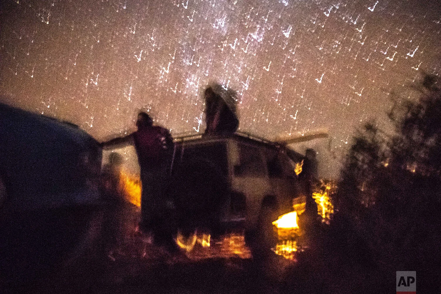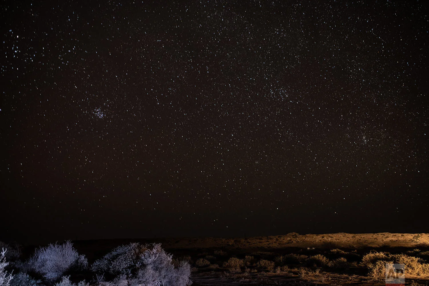 A view of a starry night in a remote desert where smugglers build fishing boats intended to be used for migration to the Canary Islands, in Dakhla, Morocco-administered Western Sahara, Dec. 22, 2020. (AP Photo/Mosa'ab Elshamy)