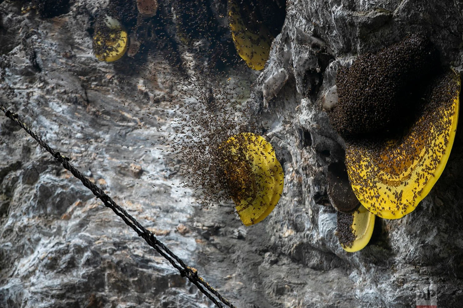 Text from AP News story, AP PHOTOS: Nepal’s cliff honey hunters risk their lives, by Niranjan Shrestha
