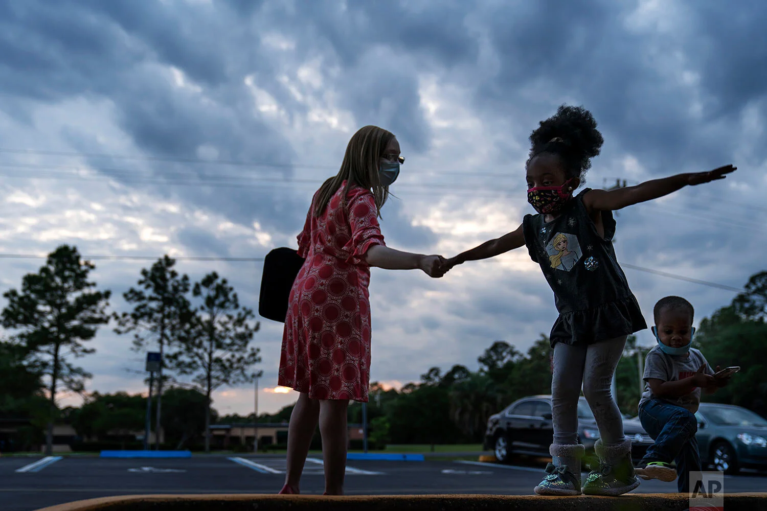 Worshippers leave a church service in Palatka, Fla., Wednesday, April 14, 2021. (AP Photo/David Goldman)