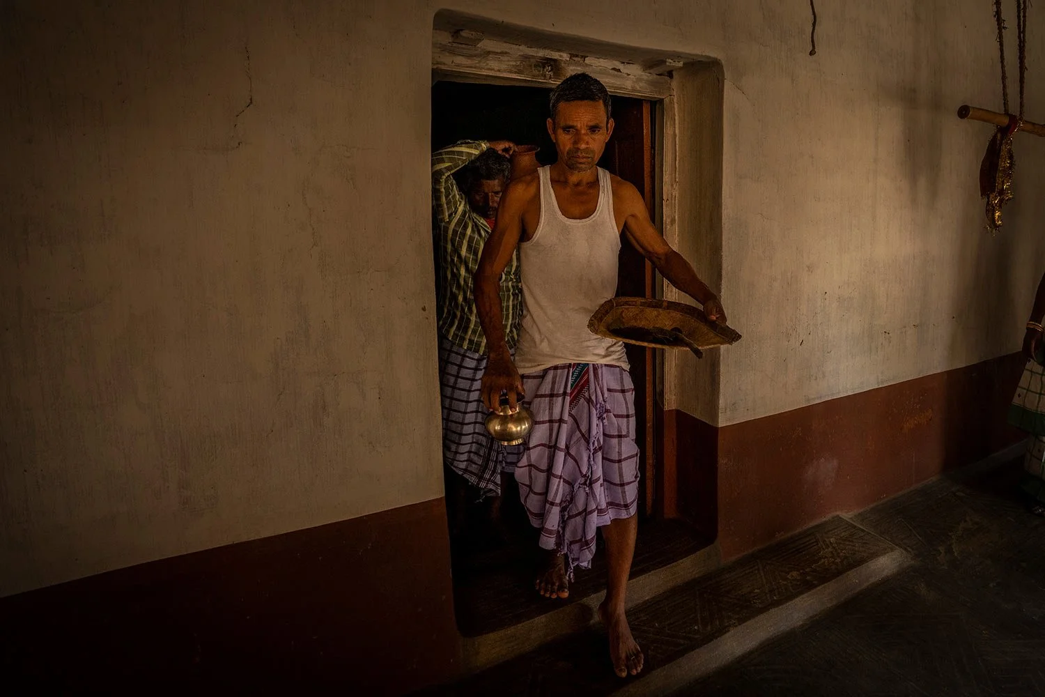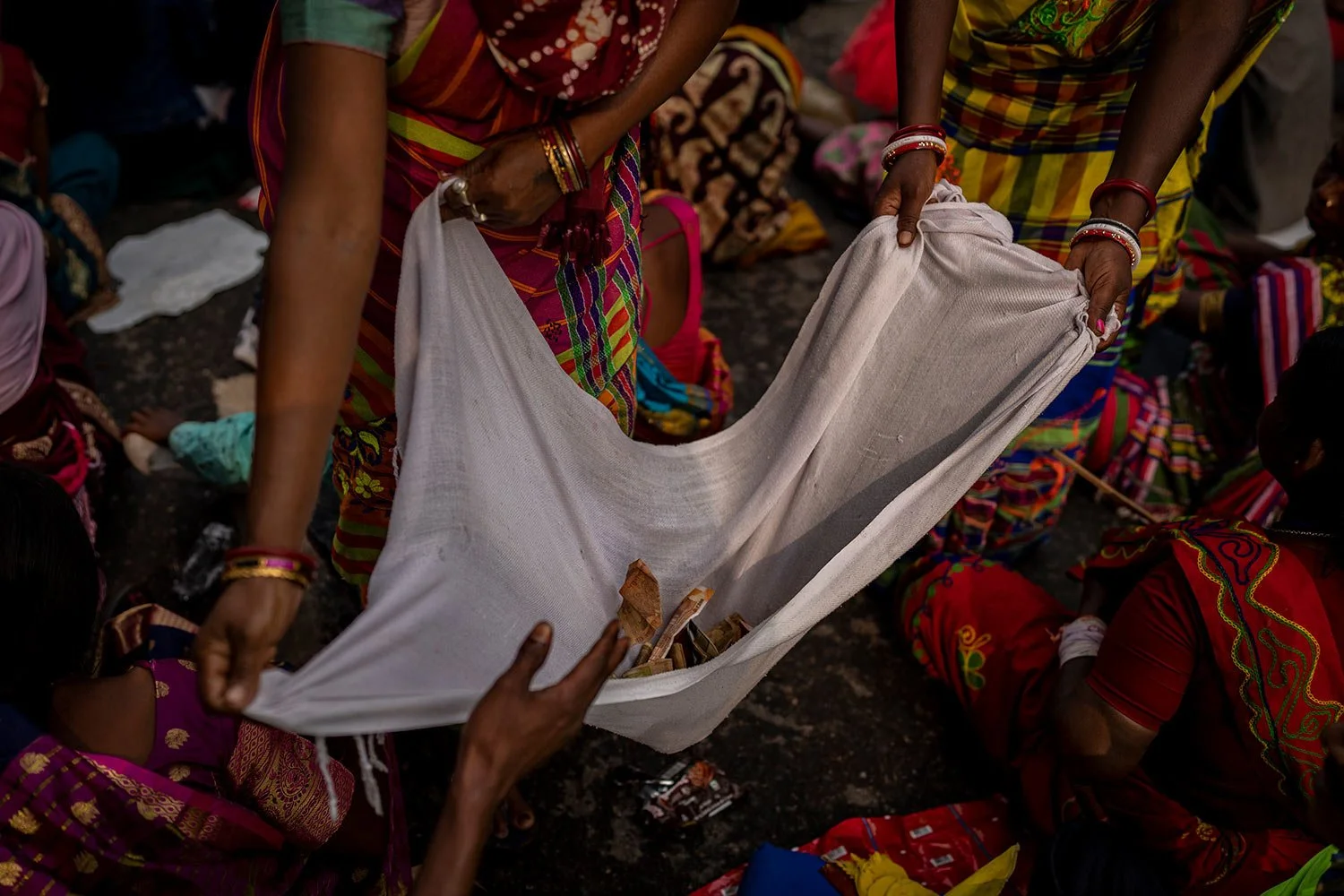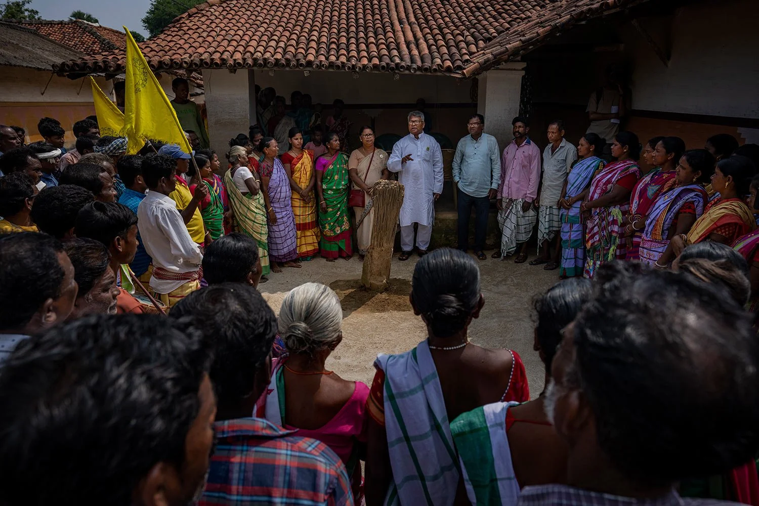 The ritual began with a thunderous roll of leather drums, its clamor echoing through the entire village. Women dressed in colorful saris broke into an Indigenous folk dance, tapping and moving their feet to its galloping rhythm.
