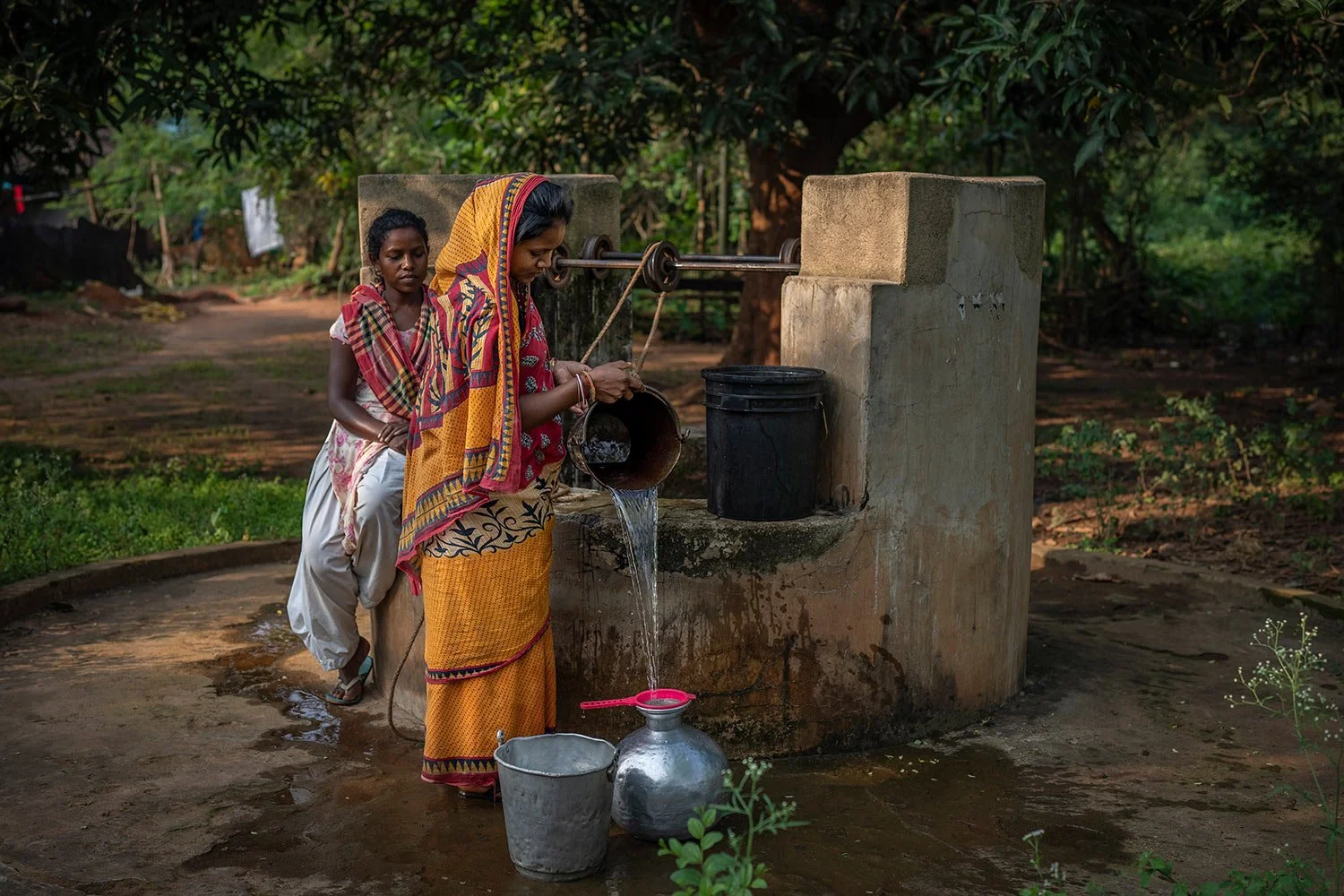 A tribe woman collects water from a well in a village Angarpada, in the eastern Indian state of Odisha, Oct. 20, 2022. (AP Photo/Altaf Qadri)