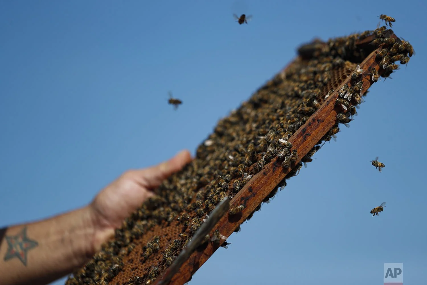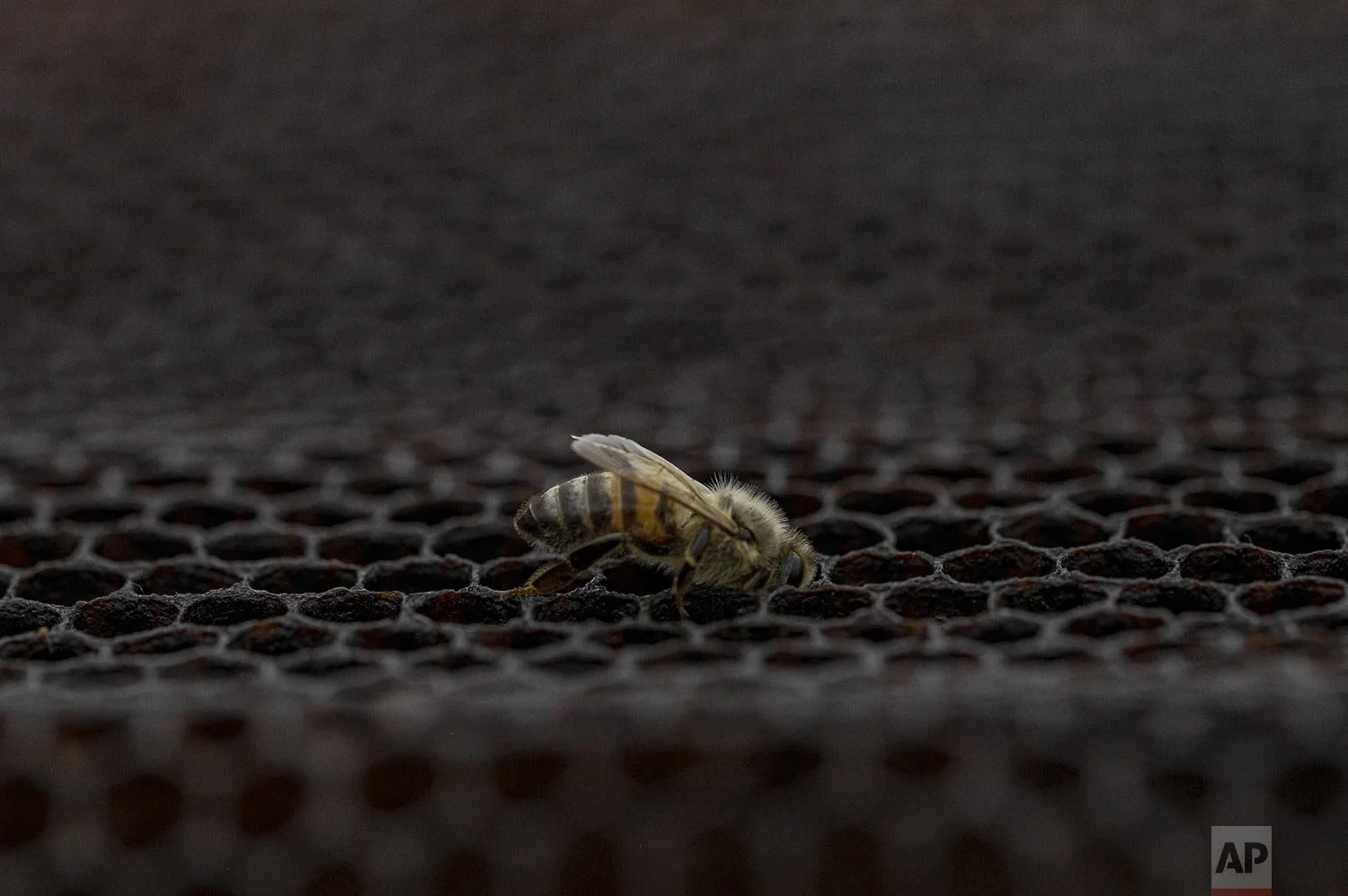 Lead photo: A bee feeds on honey from a honeycomb at a beekeeper's farm in Colina, on the outskirts of Santiago, Chile, Jan. 17, 2021. (AP Photo/Esteban Felix)