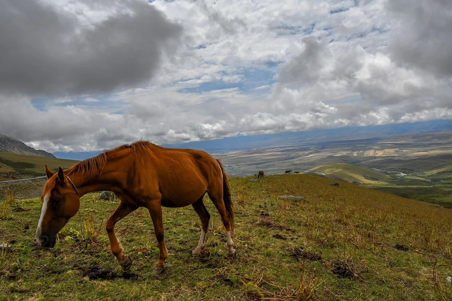 In winter, the valley, which is 2,500 meters (8,200 feet) above sea level, is covered in meters-deep snow. When the thaw comes, the abundance of water feeds dense grass and herbs. By the end of summer, the valley is awash in a thick, emerald carpet of juicy blades of grass that horses eagerly devour.