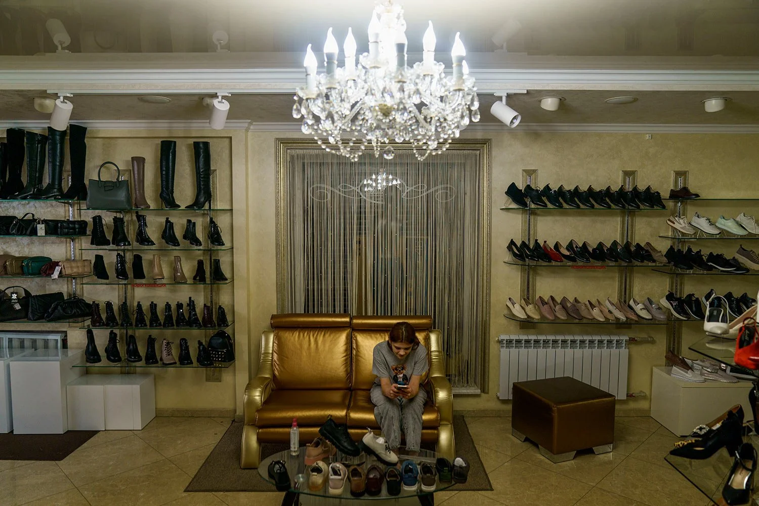 In Kramatorsk, 16-year-old Sofia Mariia Bondar spends most days sitting in the shoe section of a clothing shop where her mother works.