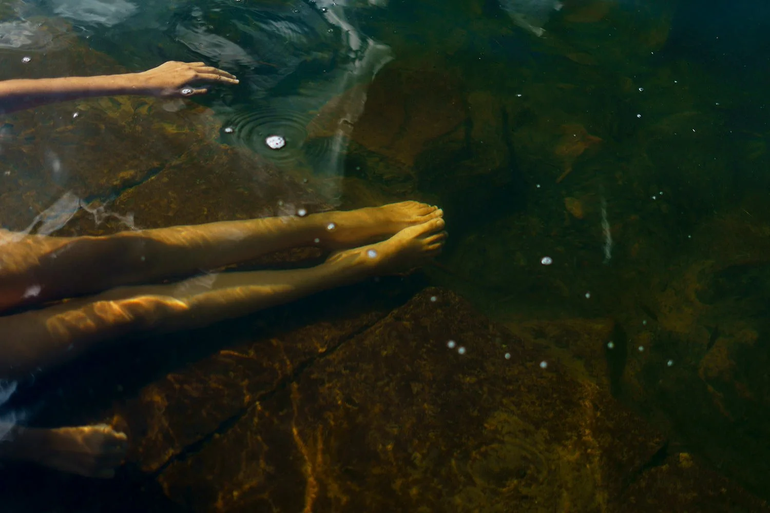Anastasiia Aleksandrova, 12, sits in the water while visiting a lake with her grandparents in Sloviansk, Donetsk region, eastern Ukraine, Monday, Aug. 8, 2022. (AP Photo/David Goldman)