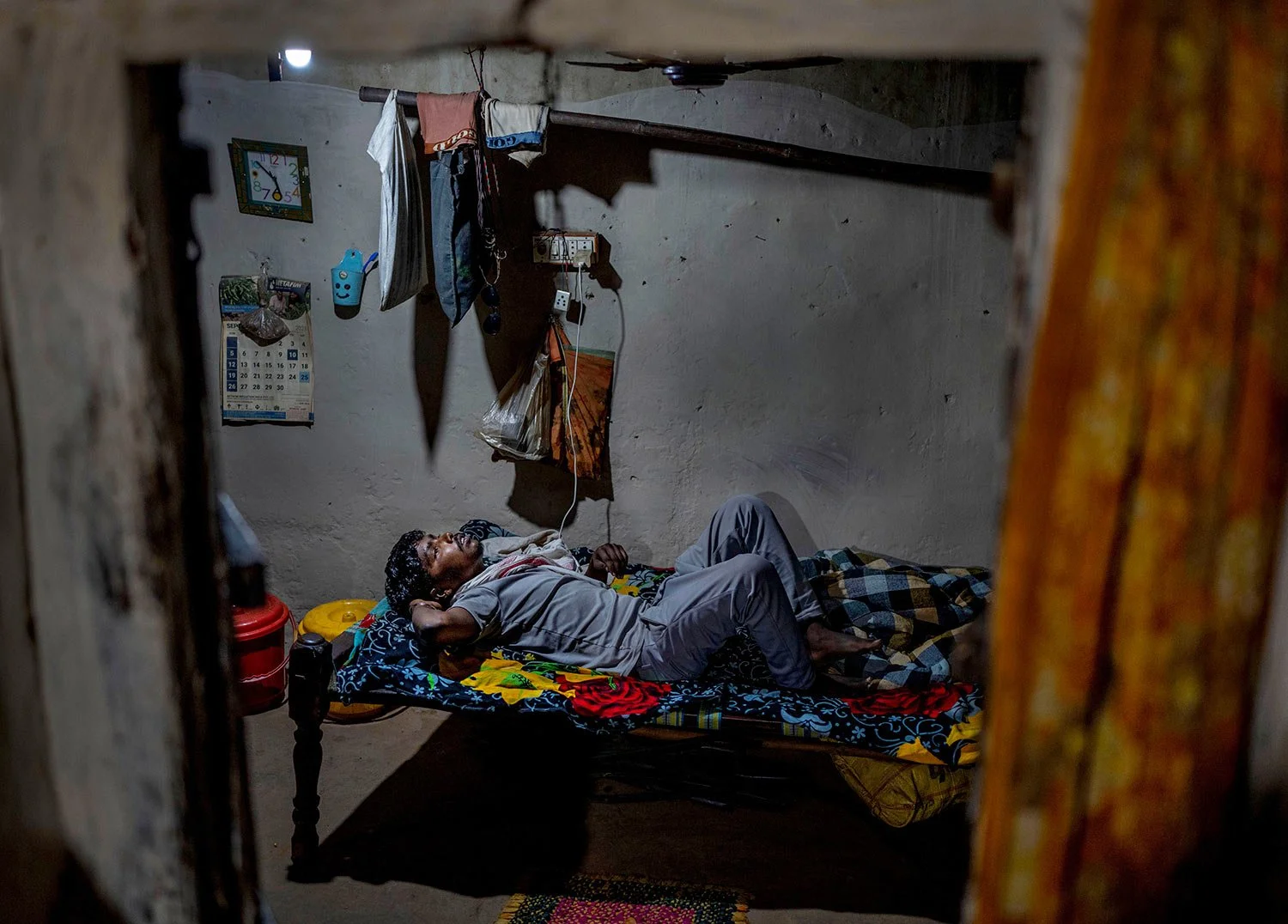 Kailash Kaunsa, who has sickle cell disease, rests in bed at his home in Kalyanpur village in Ambikapur district, Chhattisgarh state, India, Tuesday, March 21, 2023. (AP Photo/Rafiq Maqbool)