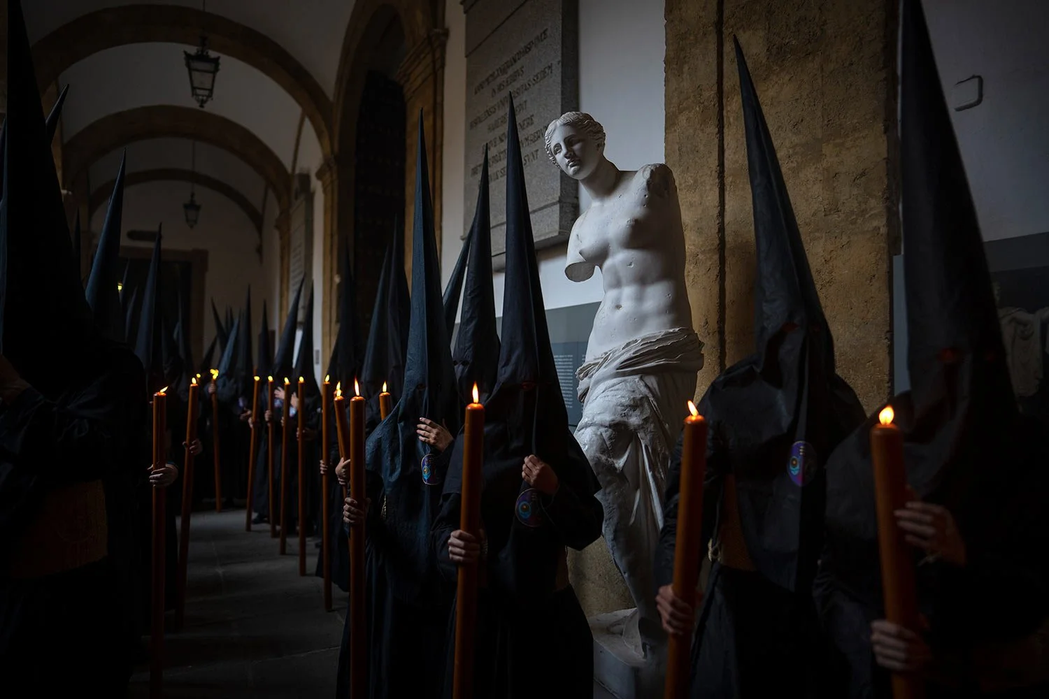 The celebrations date back to when Spain was a bastion of Roman Catholicism. Nowadays, the hooded nazarenos in black, white, purple and red come from all walks of life, many with no religious inclination.