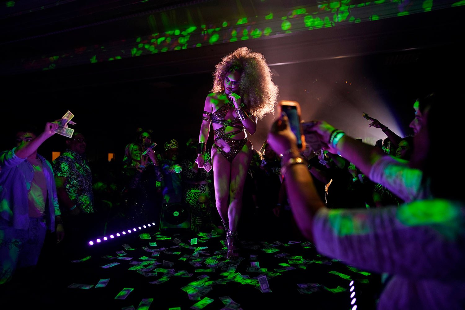 Drag queens donning the white, red and blue of the Hawaiian flag shimmied across the stage to a throbbing techno remix of “Aloha Oe,” a song composed by Hawaii's last reigning monarch. Spectators roared as a performer shook her hips in a Tahitian-style dance.