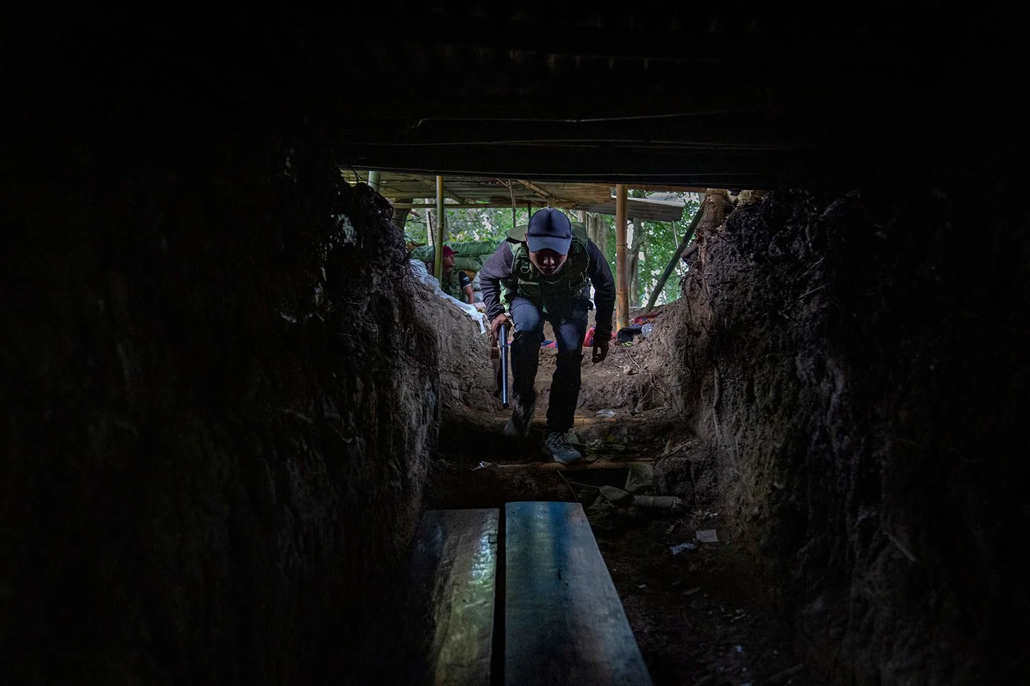“Our mothers, our sisters, they fast for us, praying to God,” Vaiphei says, standing at the mouth of his bunker where he keeps a copy of the Bible alongside him.