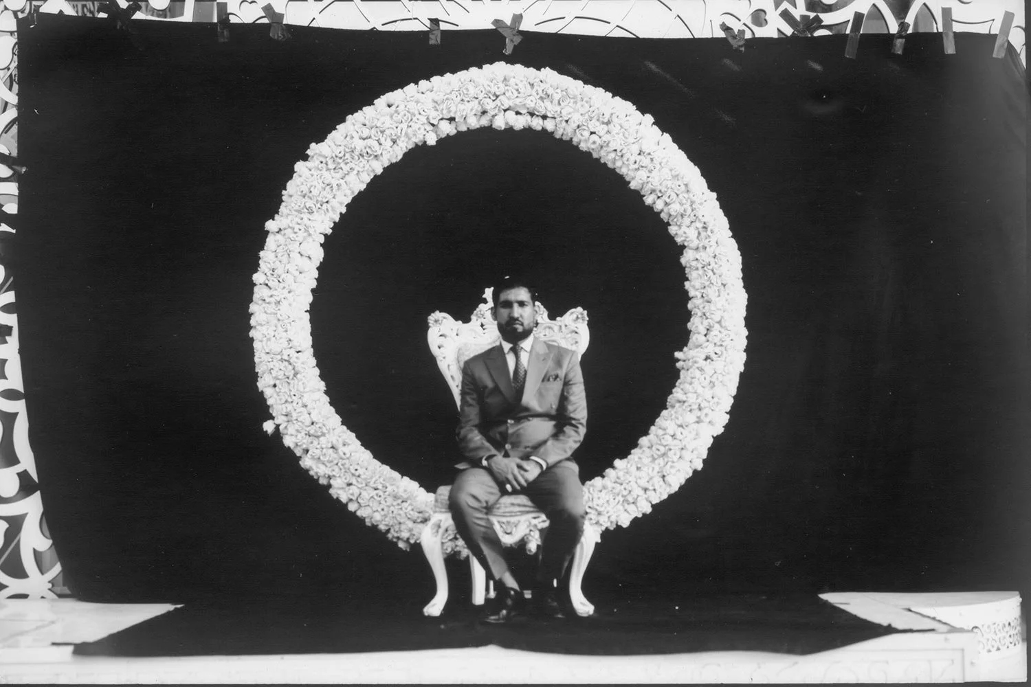 Mohammad Shafiq Azizi, 29, manager of the Imperial Continental wedding hall, poses for a portrait in Kabul, Afghanistan, Wednesday, May 31, 2023. (AP Photo/Rodrigo Abd)