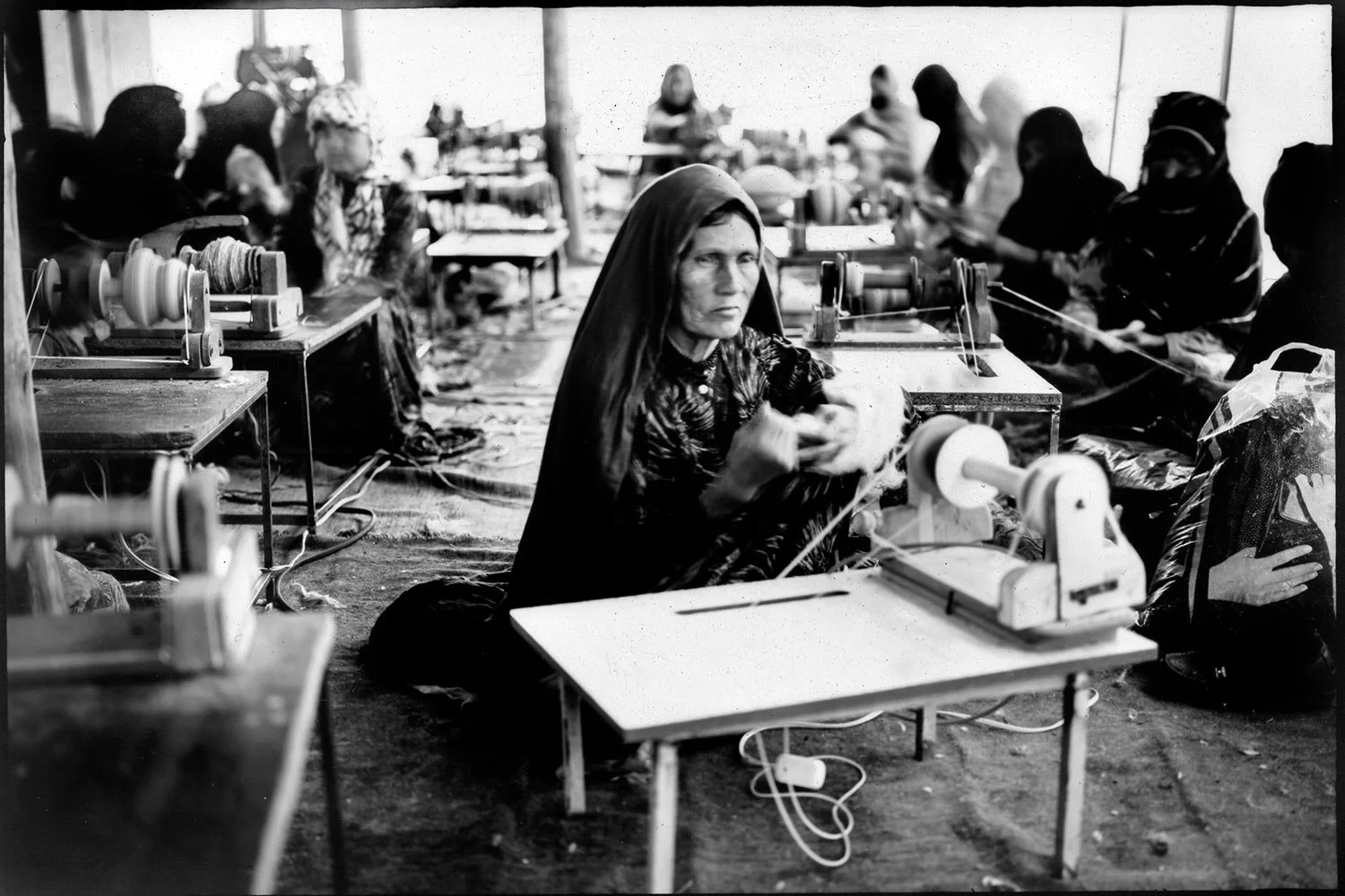 In another room, 50-year-old Hakima is introducing her teenage daughter Freshta to weaving. It is their only way of eking out a living, though she still dreams her 16-year-old daughter will someday become a doctor. “Afghanistan has gone backwards,” she says, donning an all-encompassing burka to pose for a portrait. “People go door to door for a piece of bread and our children are dying.”
