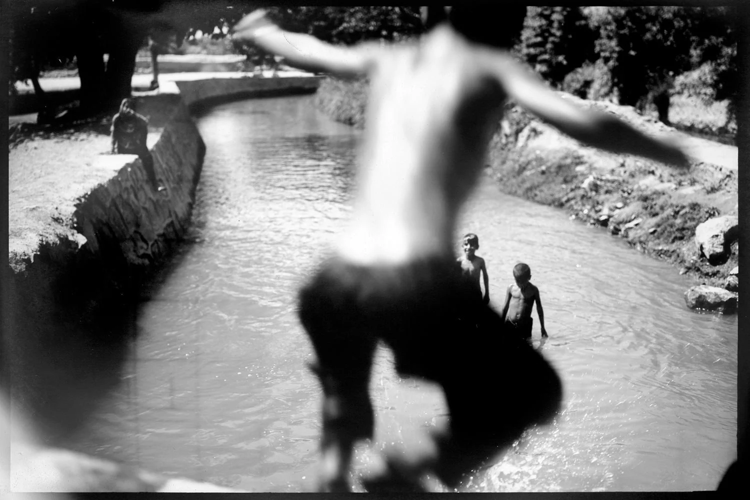 Without fear of airstrikes or bullets, children shriek in delight as they splash about in an irrigation canal, leaping into the murky water from a bridge.