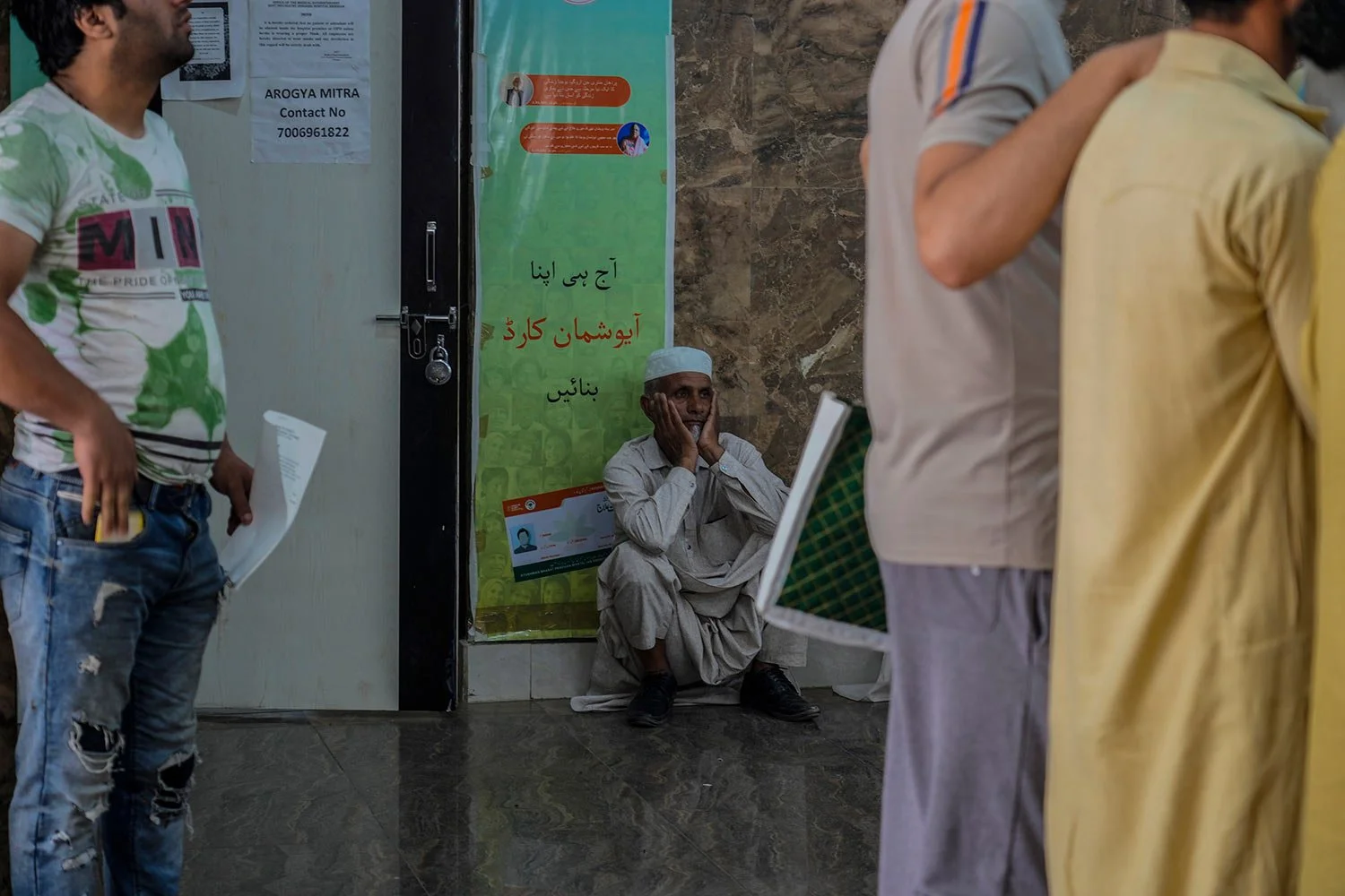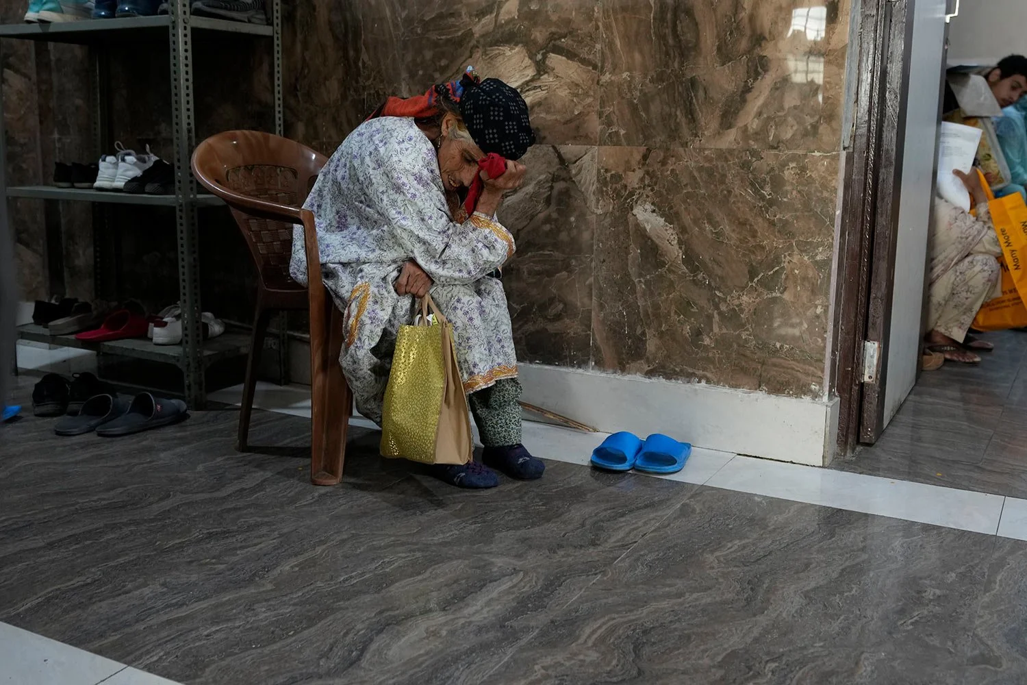 An elderly Kashmiri man waits inside the outpatient department (OPD) at a mental health hospital in Srinagar, Indian controlled Kashmir, Tuesday, Aug 1, 2023. (AP Photo/Mukhtar Khan)