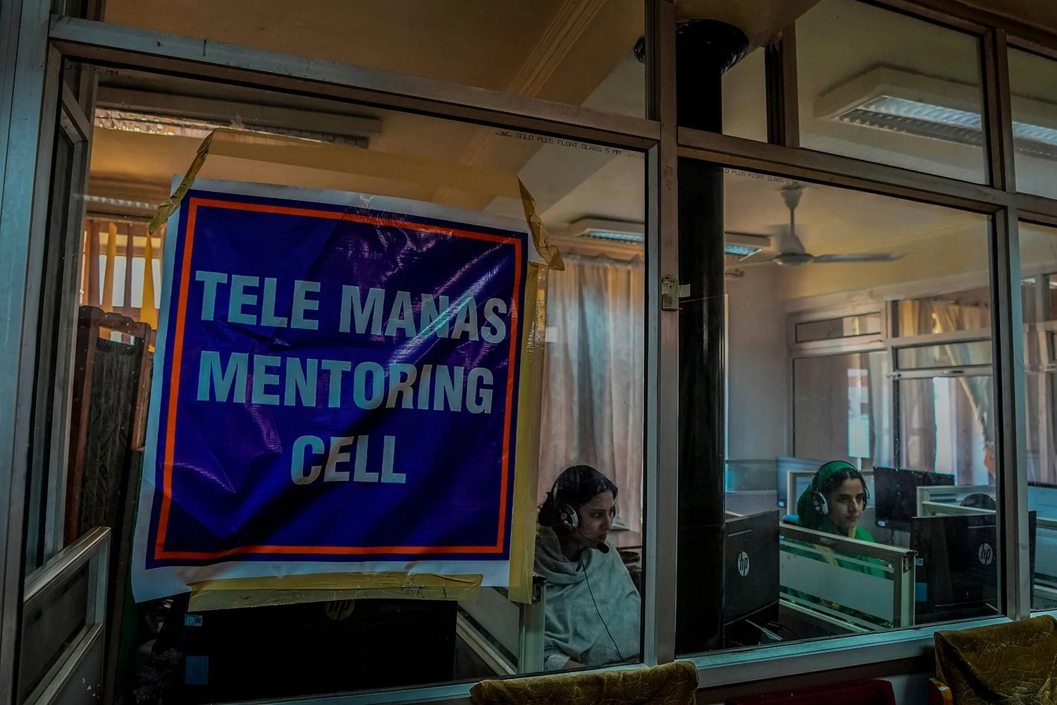 Counsellors attend to calls inside a dedicated phone-in counseling center called "Tele Manas" at Kashmir's only major hospital for mental illness - IMHANS (institute of mental health and neurosciences), in Srinagar, Indian controlled Kashmir, Wednesday, Aug 2, 2023. (AP Photo/Mukhtar Khan)
