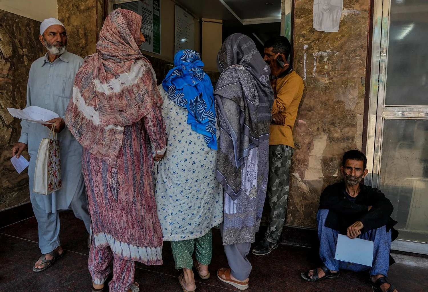 People arrive as another waits outside the outpatient department (OPD) at a mental health hospital in Srinagar, Indian controlled Kashmir, Tuesday, Aug 1, 2023. (AP Photo/Mukhtar Khan)