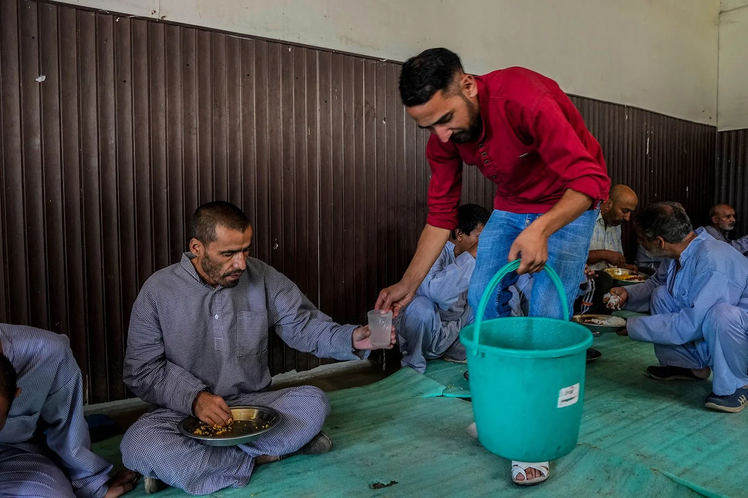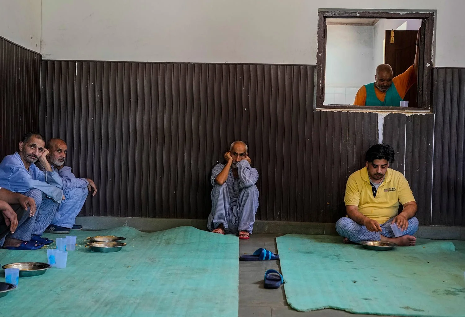 Patients sit inside a room used as a dining area at a mental health hospital in Srinagar, Indian controlled Kashmir, Tuesday, Aug 1, 2023. (AP Photo/Mukhtar Khan)