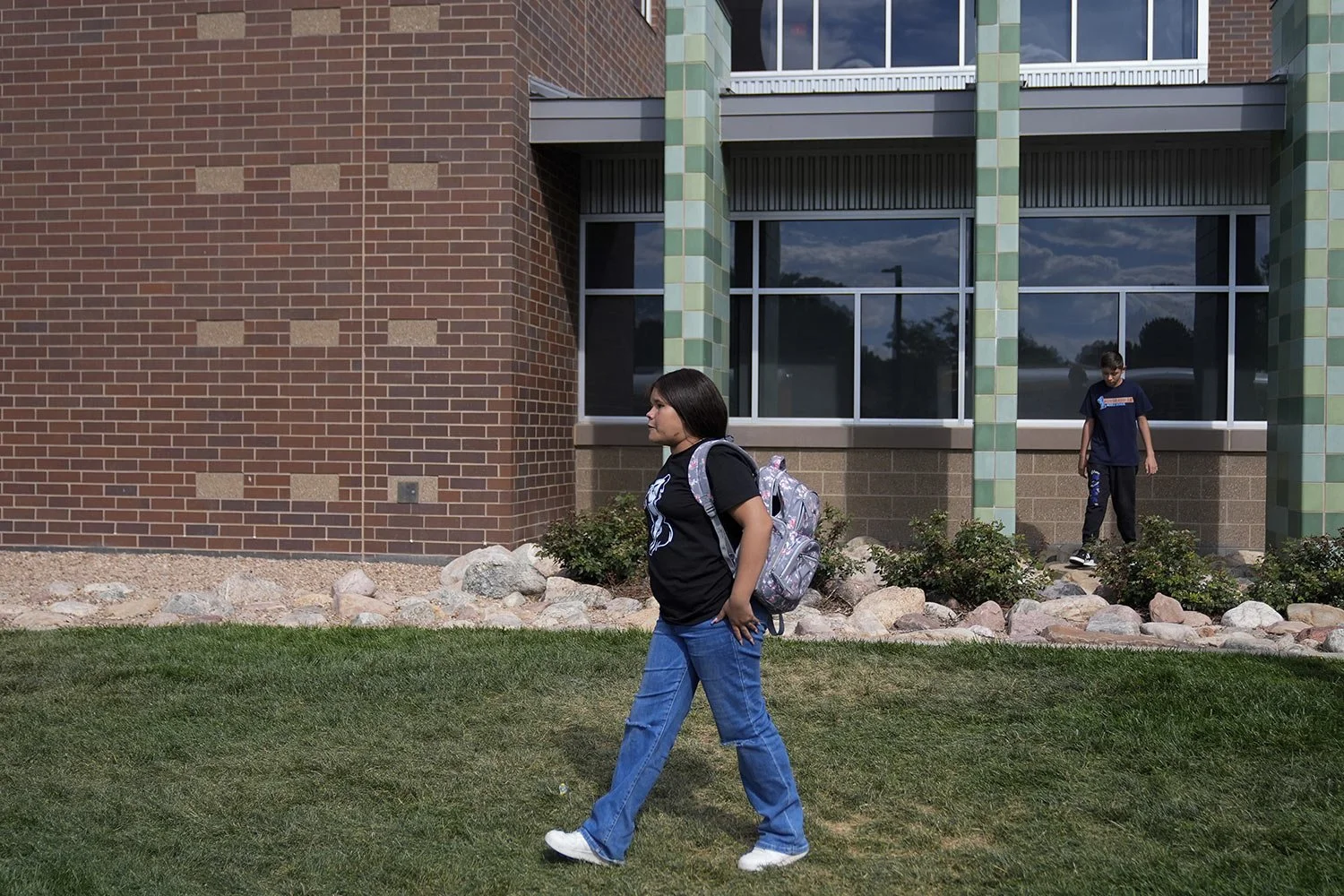 Alisson Ramírez walks into one of her classes at Aurora Hills Middle School, Wednesday, Aug. 28, 2024, in Aurora, Colo. (AP Photo/Godofredo A. Vásquez)